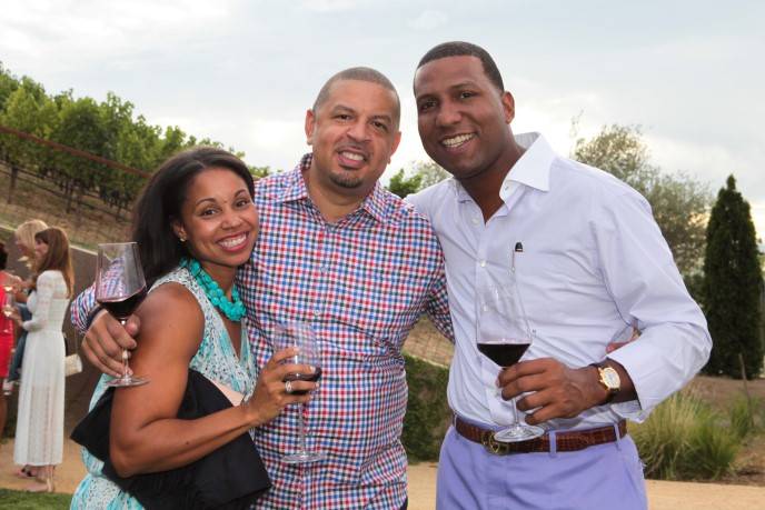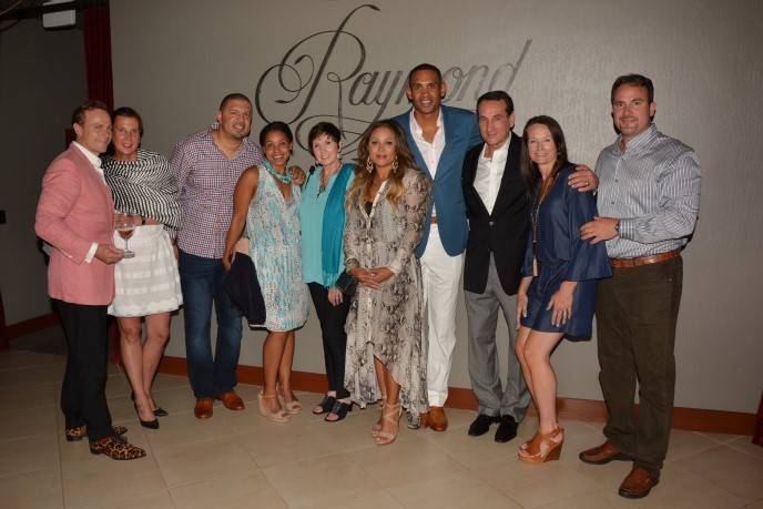 The weekend included a cancer research symposium, dinners at B Cellars, Joseph Phelps Vineyards, Raymond Vineyards and Silver Oak Cellars, along with a members-only Humanitarian & Founders Dinner at Gail and Carmen Policy‘s Casa Piena Winery, a Club Red after party at Raymond Vineyards, the Presidents Club & Vintner Grant Honoree Luncheon, honoring Rick and Elaine Jones, sponsored by Bentley Motors at HALL Wines, a party on the lawn of V Marketplace featuring famed restaurateurs, chefs and vintners, plus a connoisseur wine auction and dancing to Project M. Duke University was well-represented with about 40 people, including former basketball stars Grant Hill (accompanied by his singer/songwriter wife Tamia), Jeff Capel (now the associate coach), Shane Battier and Mike Dunleavy Jr., and other notable alums such as Capel’s wife Kanika Blue Capel and Eddy Cue, a Senior VP at Apple. ESPN and ABC Sports commentator John Saunders, along with ESPN executives, were also on hand to help raise money for the charity that touts a four star (out of four) charity rating for its sound fiscal management and commitment to accountability and transparency.