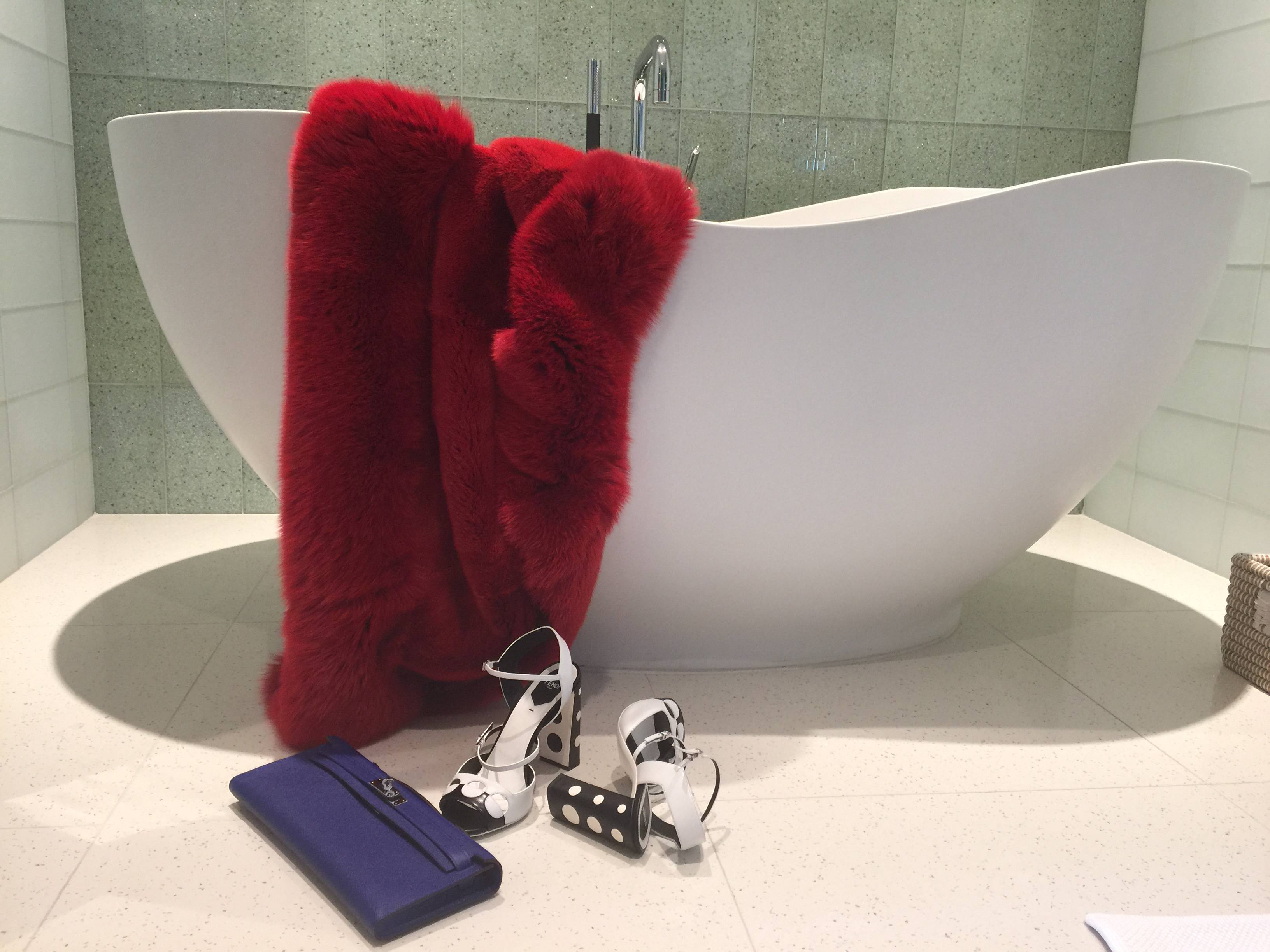 After the super-friendly greetings and glass or two of chilled Cristal, (Farah’s favorite) I found myself inside the ultimate closet a set-up: it’s a huge walk-through closet that connects Farah’s bedroom and the bathroom.