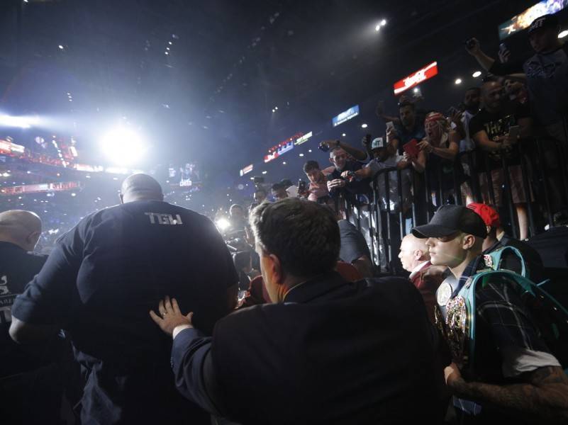 The match drew a crowd of the biggest names in entertainment and sports. Those who sat ringside included Justin Bieber, Joe Manganiello (who hosted his own fete on the 12th for the reopening of LAVO Las Vegas), Nick Cannon, Jamie Foxx, Brad Garrett, David Guetta and DJ Tiesto.