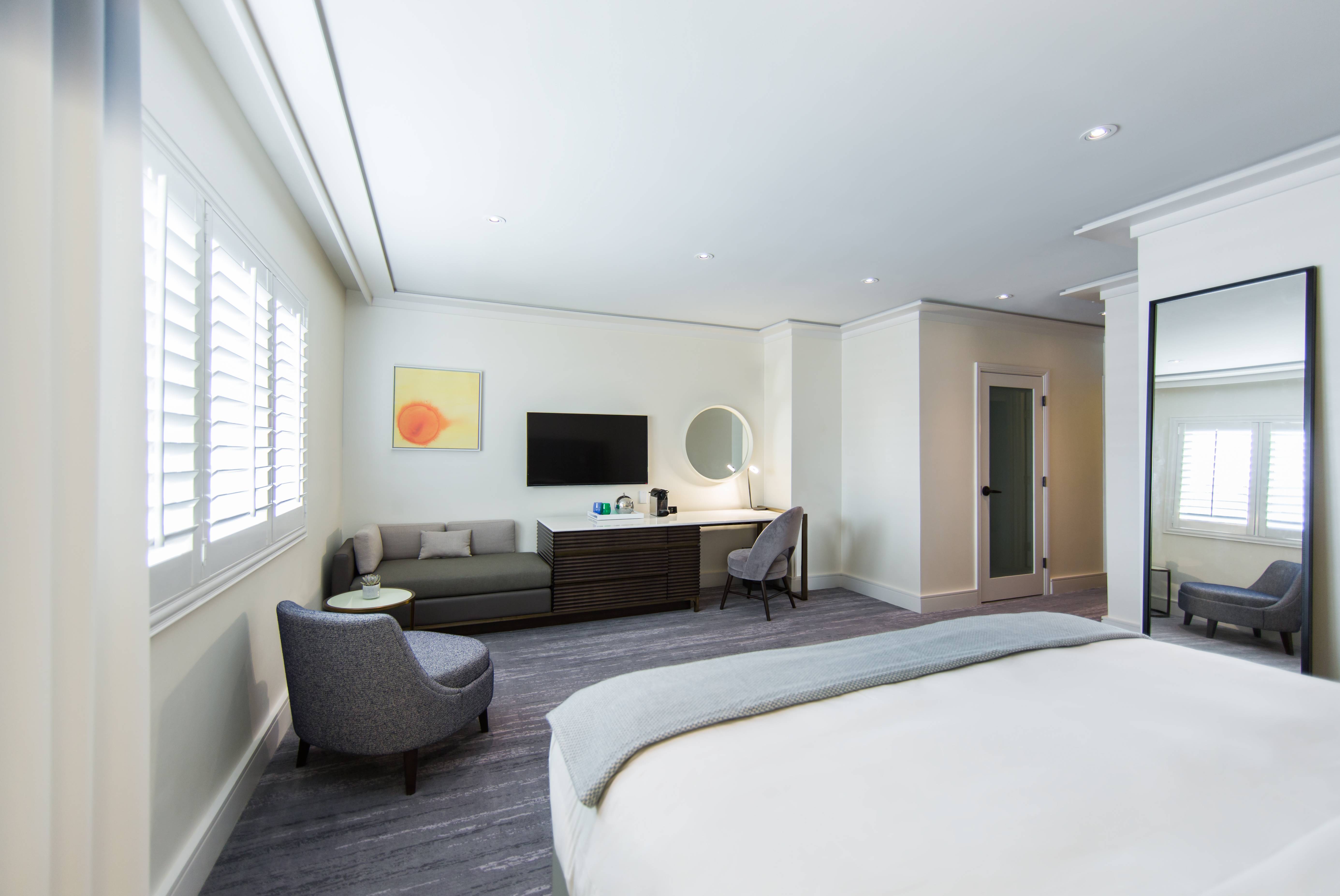The hotel relaunched in August after a multi-million dollar renovation, and it shows. California is celebrated in the redesign through the splashes of bright colors s and original design elements, from the whimsical wallpaper to the ultramodern artwork as well as artistic touches including bespoke silk embroidered Fromental wallpaper with a nod to famed artist David Hockney, as well as a custom weave sculpture by Renee Dinauer and original wall art by David Dauncey.