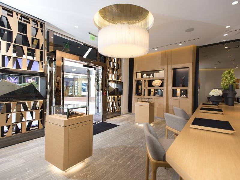 The 1,342-square-foot, three-level boutique resides along the elegant cobblestones of the Two Rodeo shopping district. Its design features oak, Vals stone and metallic surfaces, evoking the natural beauty of the Vallée de Joux region in Switzerland, where Audemars Piguet timepieces have been crafted for the past 140 years. In addition to enjoying comprehensive timepiece collections on display, clients can also discover a watchmaker corner—where they can learn about the creation of AP watches through a “virtual manufacture” experience—while relaxing with a beverage in the top-level lounge.