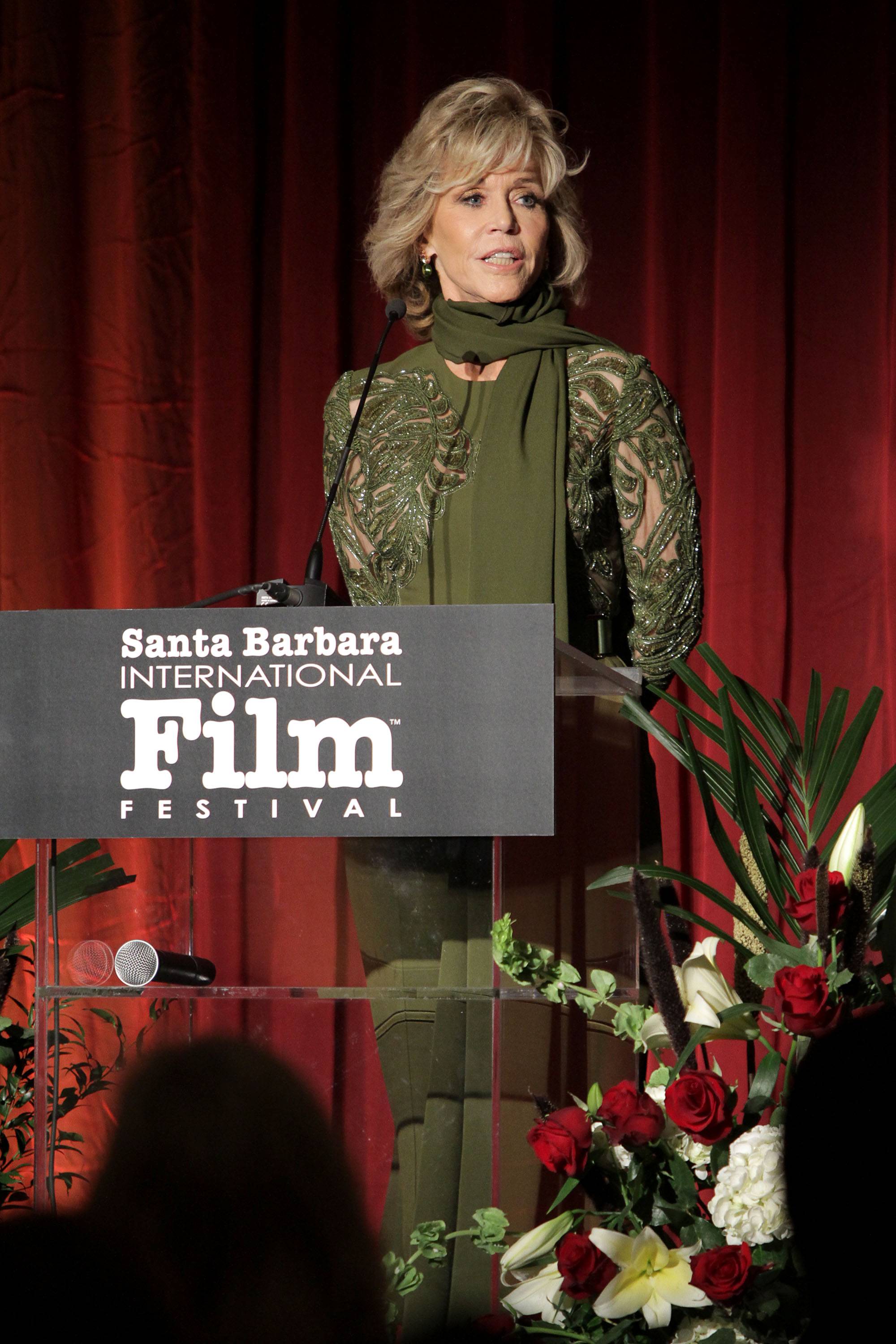 Jane Fonda Accepts Excellence in Film Award at Santa Barbara Film Fest Ceremony