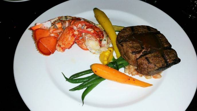 The dinner took place in the Hawthorn Room, where a massive window revealed the Golden Gate Bridge in the distance.where a five-course meal prepared by McCalls was served in the dim, flower-filled setting. A delicious 2008 Silver Oak Cabernet Sauvignon and 2013 Rombauer Chardonnay were poured.