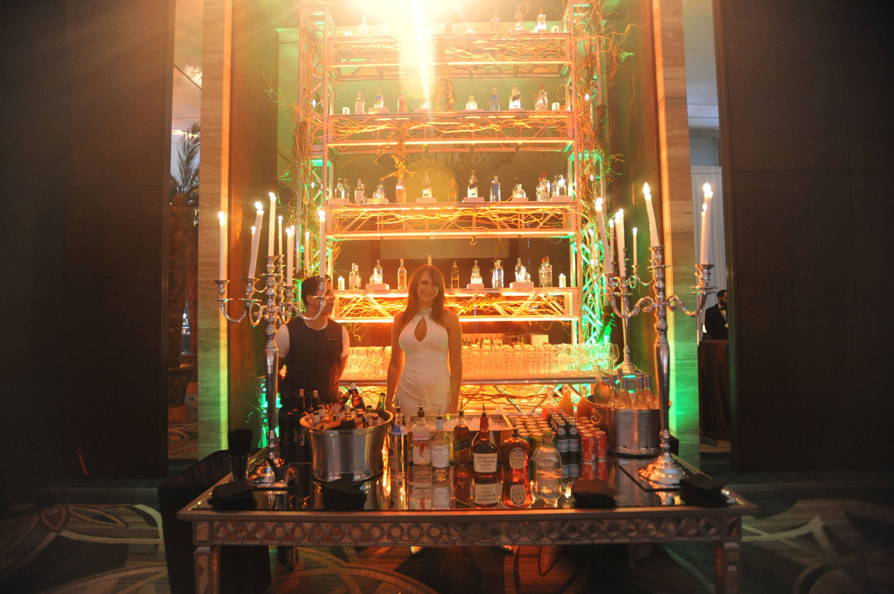 During the mystical cocktail reception, guests enjoyed specialty cocktails and a bounty of food from elaborate gourmet stations, surrounded by oversized godly ice carvings and a video montage of a larger- than-life Poseidon, God of the Sea.