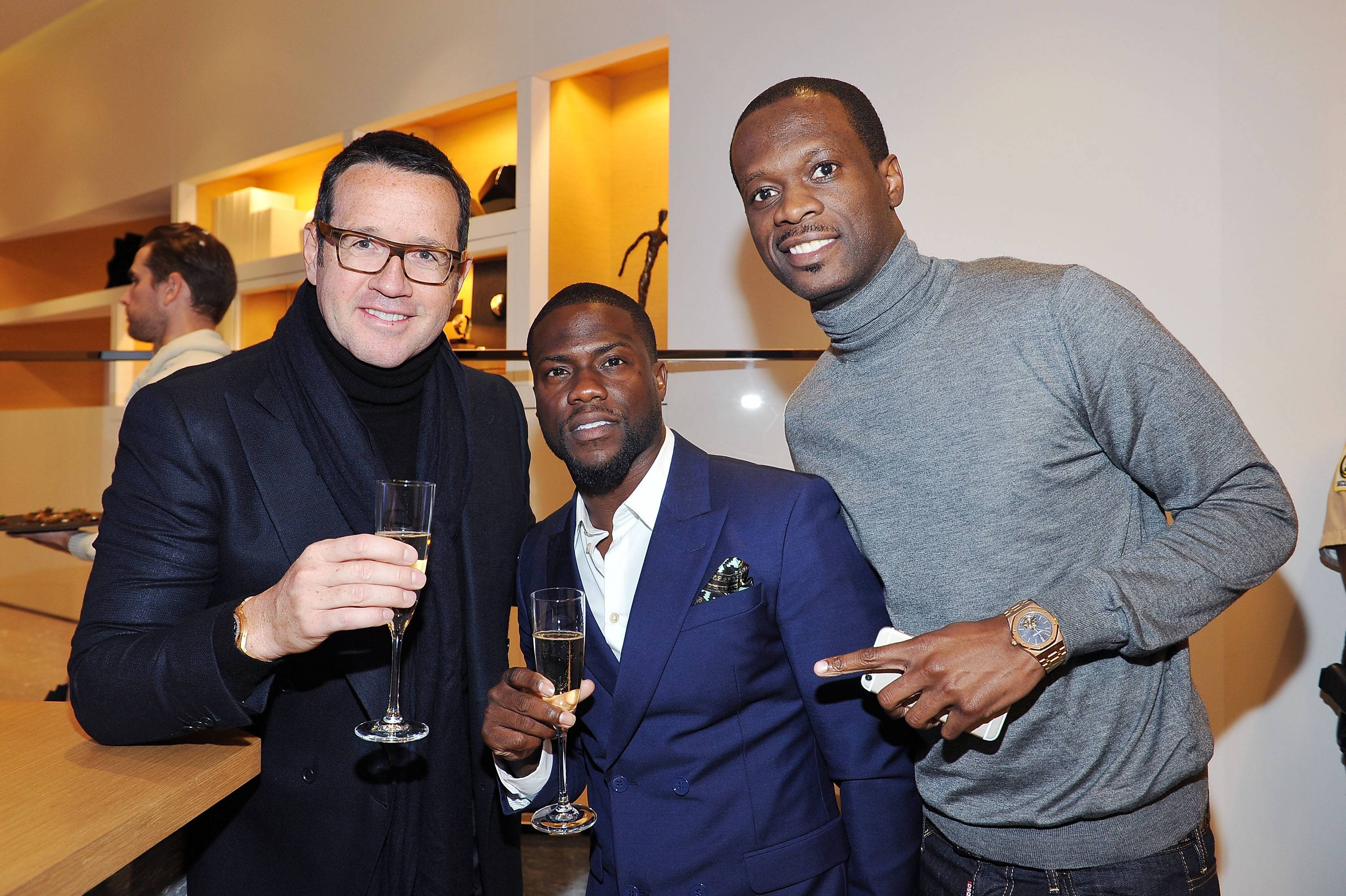 BEVERLY HILLS, CA – DECEMBER 09: Global CEO of Audemars Piguet Francois-Henry Bennahmias, actor Kevin Hart and rapper Pras Michel attend Audemars Piguet Celebrates the opening of Audemars Piguet Rodeo Drive at Audemars Piguet on December 9, 2015 in Beverly Hills, California. (Photo by Donato Sardella/Getty Images for Audemars Piguet)