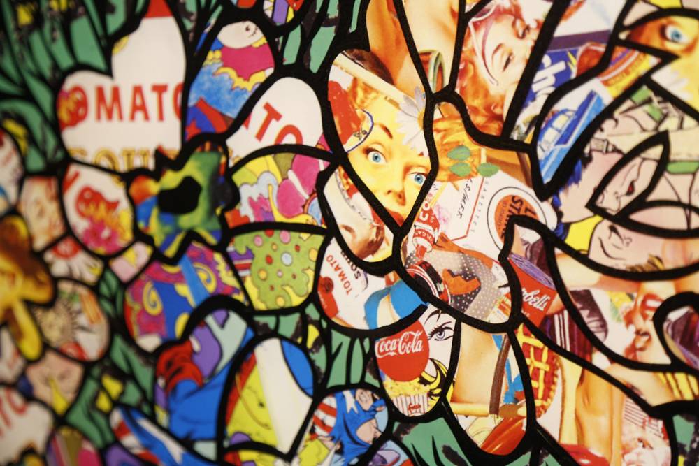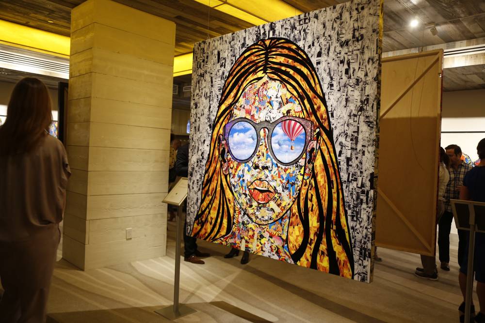 The artist hails from Toronto with work that consists of brightly colored, figurative collages that have led billionaire and hedge fund titan Michael Wekerle to call him “the next Andy Warhol.” The works include a built-in visual history of the subject consisting of original letters, magazine covers, song lyrics and other materials relevant to the pieces.