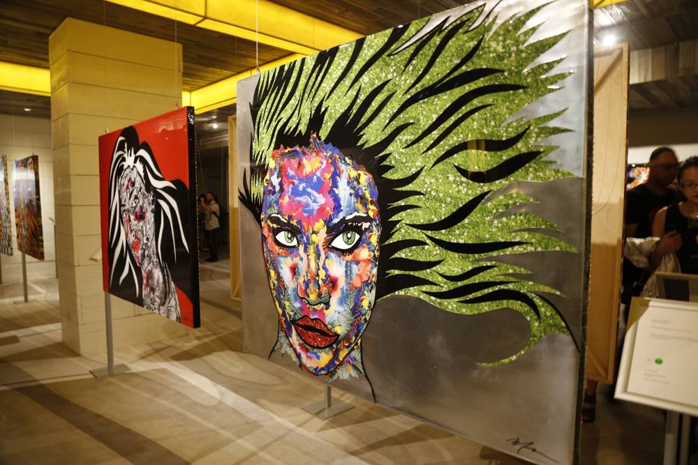 In addition to enjoying cocktails from Midori, 50 Bleu, Stella Artois and Jean-Luc Colombo, the attractive crowd got to meet the artist and get a little history behind the various, eye-popping works.