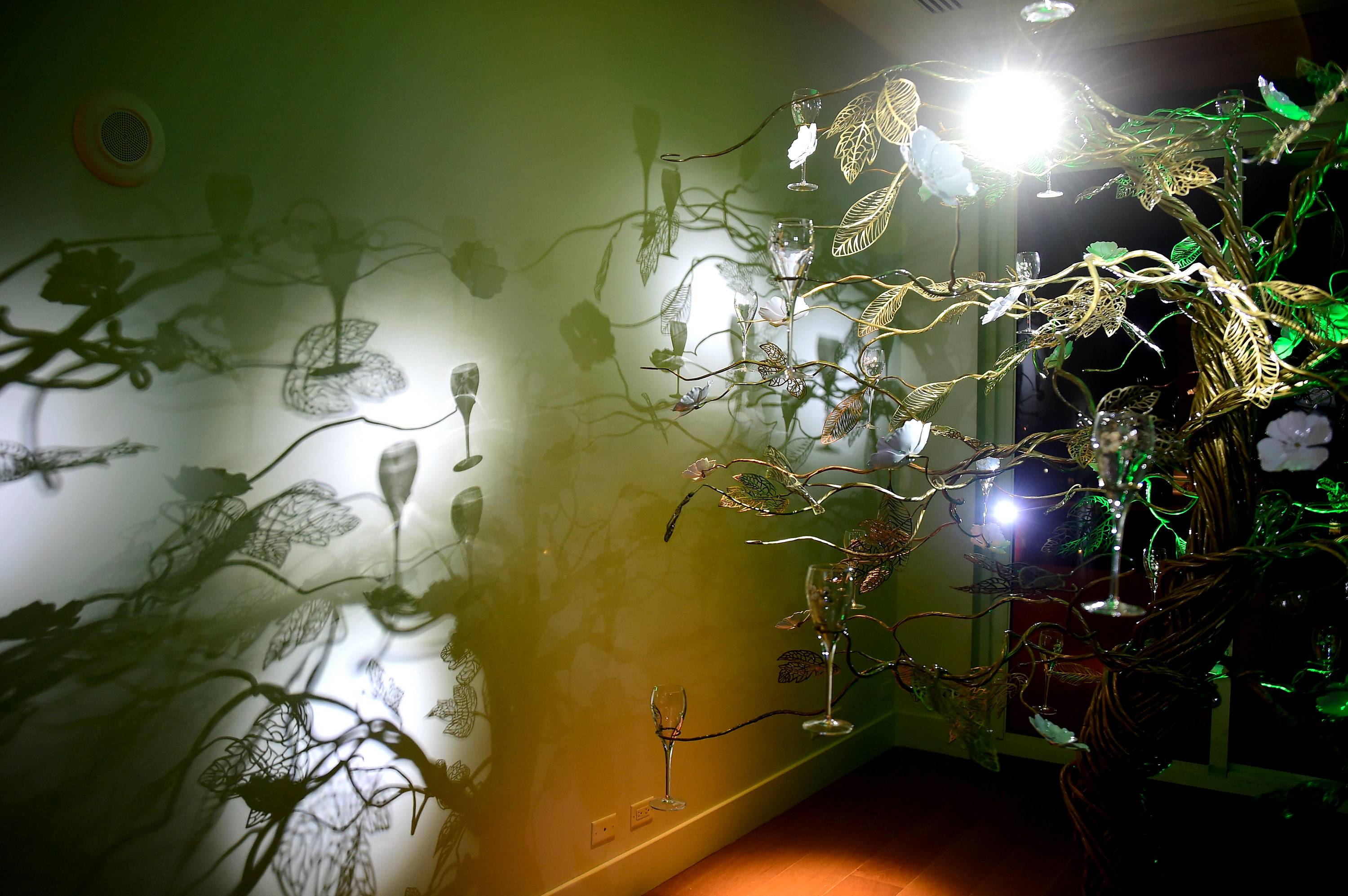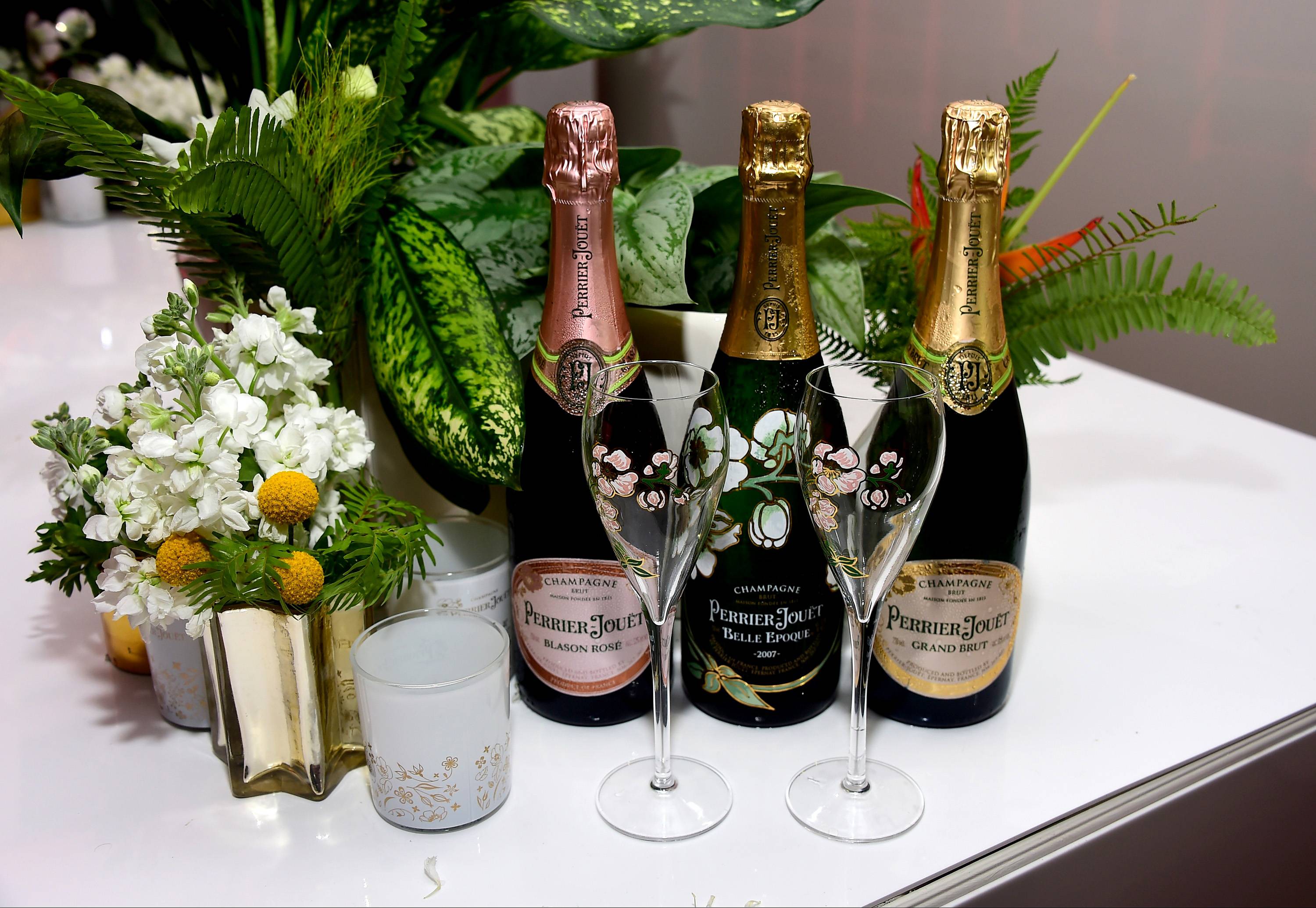 The overwhelming amounts of natural plants and flowers throughout the space gave a concrete visual to match the floral wines that are elegantly created by the Champagne House Perrier-Jouët, and perfectly packaged in the art nouveau anemone adorned Belle Époque bottles that were spread throughout the space.