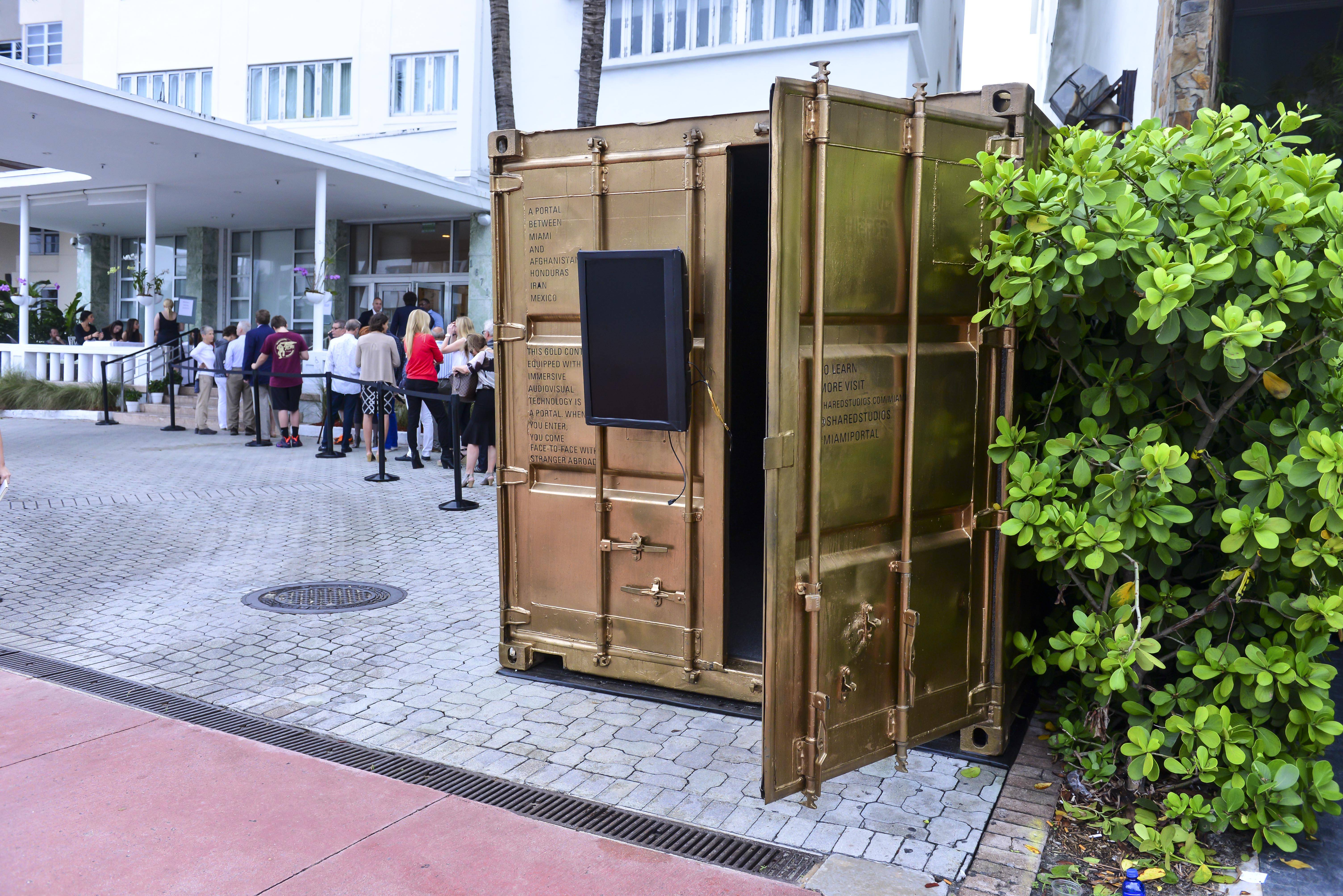 At the entrance of the hotel was an interactive installation titled Portal that connected residents and guests to strangers in Portal locations around the world, including Afghanistan, Cuba, Honduras, Mexico and more. This work is a global public art initiative linking locations around the world through gold shipping containers equipped with immersive audio-visual technology. Inside the portal you come face-to-face with a life-size person in a distant location as if they were in the same room. Postals created by Shared studios and artist Amar Bakshi currently exist in seven locations, including a Syrian refugee camp in Jordan. More thanks 7,000 people have engaged with each other through Portals, artists have collaborated thorough and even families have been reunited.