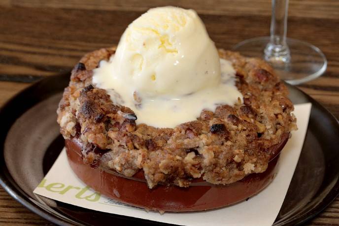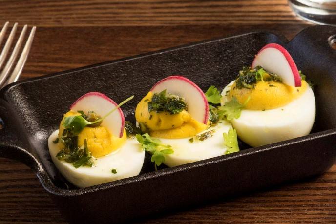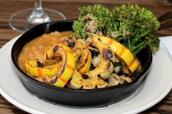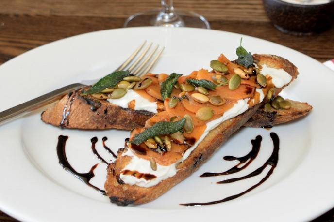 Guests can also order off of Myriad’s regular menu that features a multitude of choices in four categories. Sharing is encouraged, and is a wise option as you won’t want to miss a thing. From the Snacks portion, make sure to try her deviled eggs – a basic taken to gourmet levels, or her farm toast – a meal in itself with goat cheese mouse and roasted fuyu persimmons. Favorites from the Small Plates section include the ultra creamy, ultra delicious potted chicken-liver mousse, the ‘fall in a pan’ autumn gratin with roasted butternut squash and goat cheese, and the crispy fried chicken sammy that rivals the Bay Area exemplar from Oakland’s Bake Sale Betty. A particular Large Plate favorite is the pappardelle with pork cheeks, peas, kale and brown beech mushrooms.