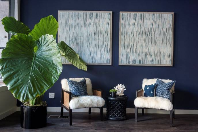 CB: All of the hide pieces are another brand, Forsyth, that we’re partnering with for the first six months, maybe longer. They provided a lot of the furniture and the hide rugs and pillows. They sustainably source zebra hide from South Africa, cowhide from Brazil and New Zealand sheep skin. In addition to the Forsyth pieces that are a lot of in-store exclusives that we don’t offer online. All of the books, many of the small knickknacks or accent pieces like that large floor pillow for example, is not online. The art above the fireplace. We have a mix of things in store that aren’t online and vice-versa.