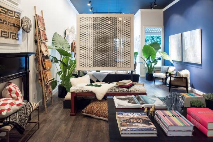 CB: We launched over two years ago selling framed textiles. We’re the first retailer of framed textiles and that differentiated product is really how we built our brand. We were selling 100% online until a week ago. So over the last year we’ve started to expand beyond art into a more comprehensive home line. The goal with this store was not just to be a shop but to invite people into the lifestyle around the brand and all of the elements around that. We really are offering a new lifestyle to today’s global citizen, who is a world traveler, who’s interested in social issues around the world and who also is a fashionista who appreciates beautiful design and wants product that she’ll invest in for the quality and authenticity of the piece alone and that rich history behind it. I think that’s what’s so awesome about being able to have a store is to let people in that lifestyle and see the context around an art piece or a pillow.