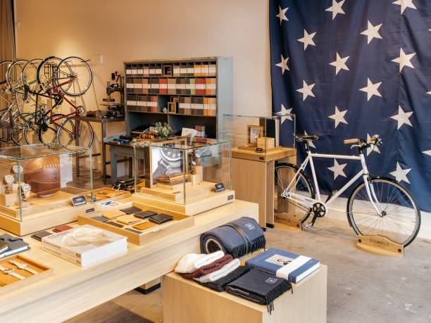 The 1,700-square-foot Downtown Palo Alto retail space features a community gathering space to encourage creative minds to meet for private or public events. Located in the landmark Birge Clark building, the store stays true to the historical 1927 design while mixed with traditional Shinola fixtures.