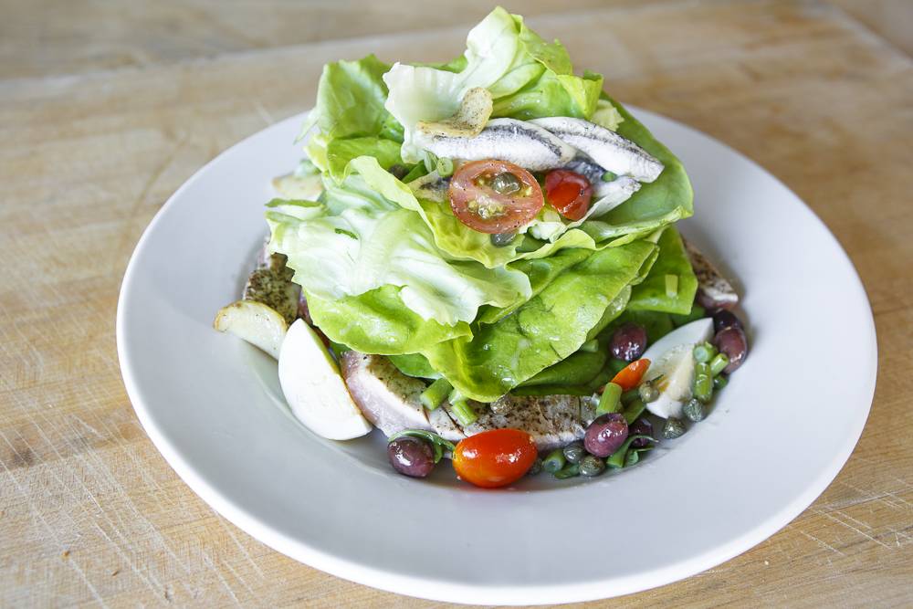5. BLD: Seared Tuna Niçoise Salad Fingerling potatoes, haricots verts, olives, spanish white anchovies, capers, hard boiled eggs, red wine dijon vinaigrette, $22