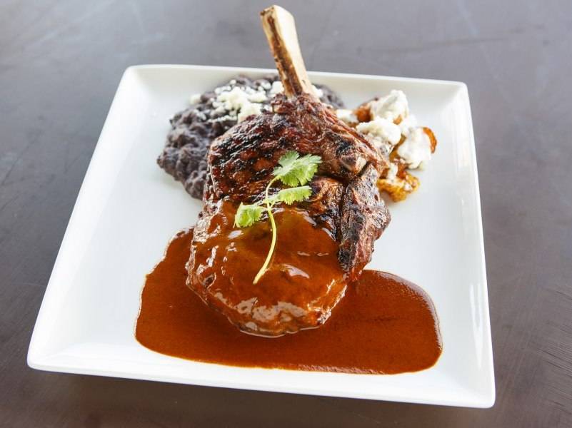 - Red O: 18 oz Prime Cowboy Ribeye Prime bone-in ribeye, fried sweet plantain, crema, traditional black beans, and spicy adobo butter sauce. $49