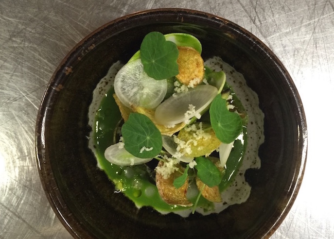 With so many other delicious flavors competing for diners’ attentions, the simple celery sorbet palate cleanser, made and served by pastry chef Hope Waggoner, was revelatory. A bit sweet, and very much tasting like the essence of celery, the small scoop made us swoon. If sorbet is the true gauge by which dessert chefs are ultimately appraised, Waggoner is a wizard. Her olive oil cake with crème fraiche ice cream and cocoa powder wasn’t too bad either.