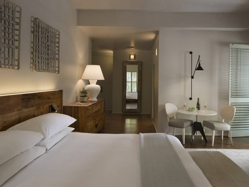 6. HOTEL HEALDSBURG When you first enter Hotel Healdsburg, you’re going to smile. We predict it right now. For starters, you’ll see a wine tasting going on before you even hit the check in desk, which is adjacent to gratis hot chocolate and hot apple cider (available at all hours). Just around the corner you’ll find a roaring fireplace, a fabulous location to enjoy a glass of Zinfandel and stave off the cold outside. But there’s more. This boutique hotel is the one to beat in Sonoma County. You’ll find a 60-foot outdoor pool, a 3,000-square-foot spa, .country gardens within the grounds, and Charlie Palmer’s internationally renowned Dry Creek Kitchen as well as 50 guest rooms and six suites, which will all receive an elegant update by spring 2016. To brighten up the rooms and elevate the abundant natural light, the new design features an updated color palate of Farrow and Ball Ammonite white walls and pale green-blue Mizzle shutters, along with light blue accents detailed through blankets, custom-made ceramic cups and plates designed by local artisan Jered Nelson. Playing off this color scheme, Healdsburg-based artist Wade Hoefer has created original cloud paintings unique to each room in shades of silver, lavender, and gray, exuding calming and ethereal undertones. Locally-made artisan furniture will add a level of richness, depth, and authenticity of place to each room. The refresh also includes a new showpiece, a large-scale panoramic photo of the Russian River taken by Barbara Bourne, a local landscape photographer known for her stunning portraits of the Russian River. Measuring nearly 15 feet in length, the black and white image depicts an 8-mile section of the nearby river and was made by blending eight images together. The hotel has also changed its lighting systems to use environmentally friendly LEDs and central switching controls at the bedside and door, supporting the hotel’s ongoing eco-conscious practices.