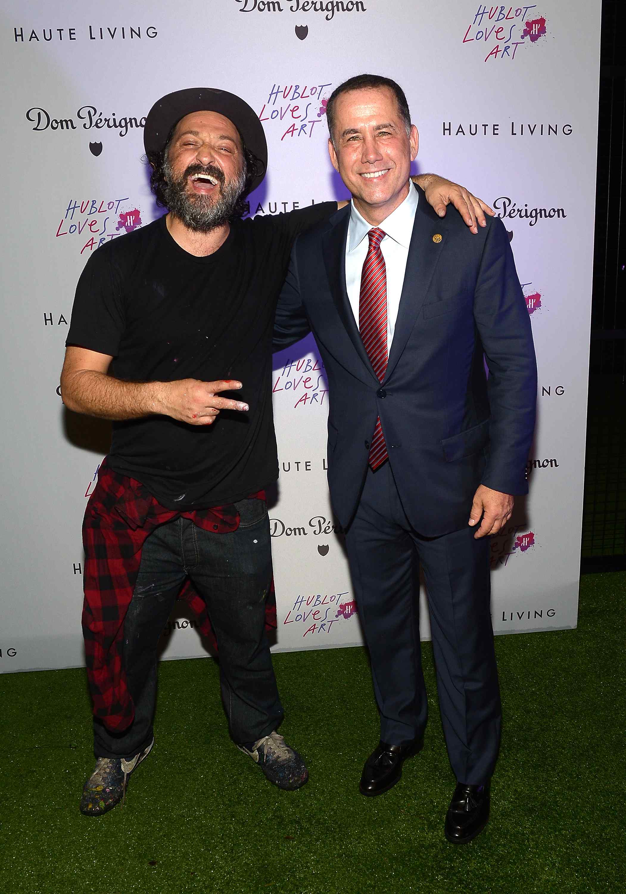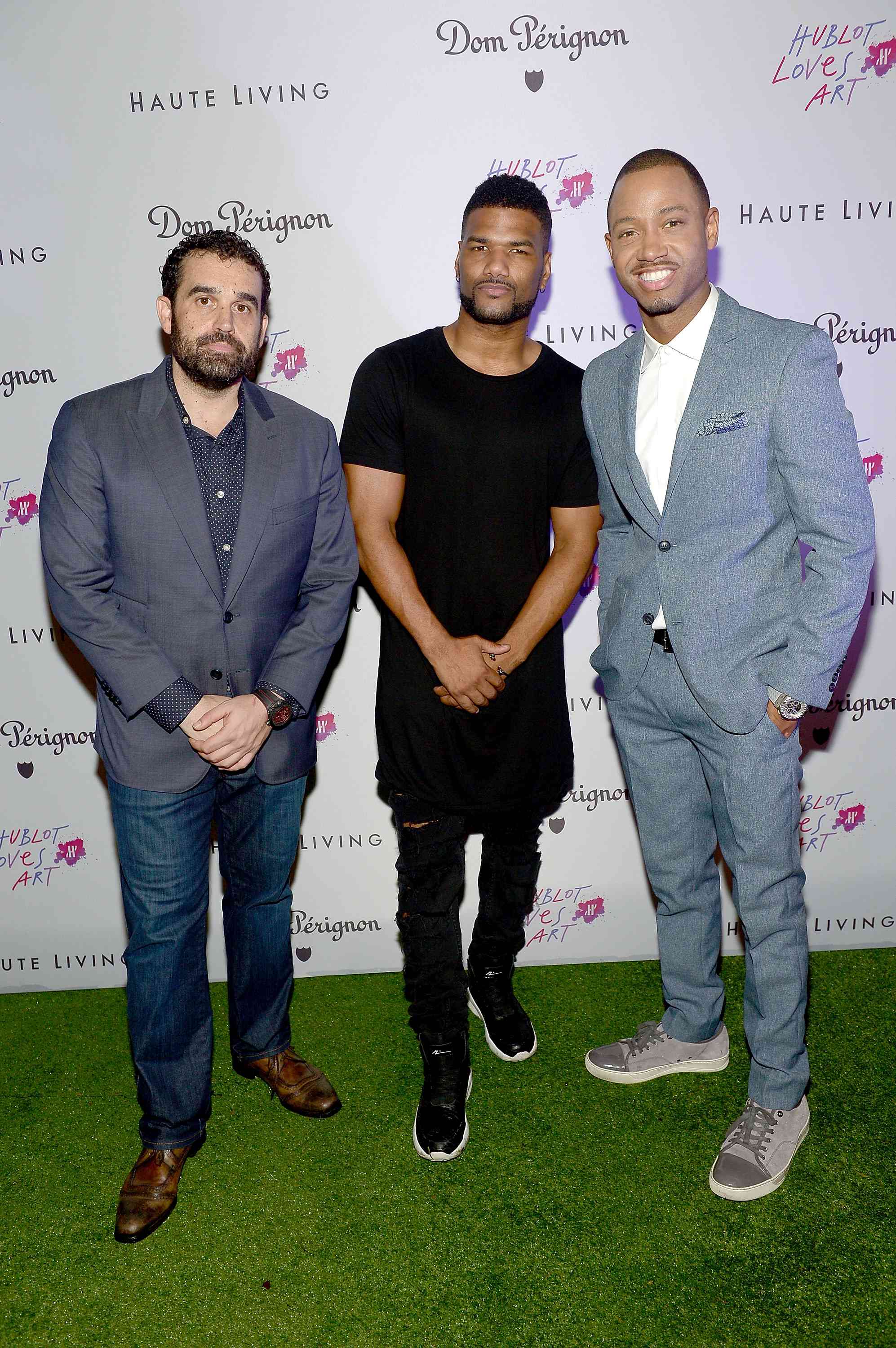 Kamal Hotchandani, Mr. Brainwash and David Grutman attend the Haute Living And Hublot Event At Wayne Boich Residence on December 4, 2015 in Miami, Florida. (Photo by Gustavo Caballero/Getty Images for Haute Living)