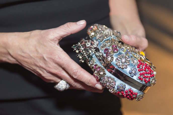 There was plenty to photograph, after all, with the stunning fashions. Fitting in with the theme of the evening, fashion designer Karen Caldwell wowed in her own revealing creation, Stephanie Marver wore a sexy Valentino, Navid Armstrong, in Roberto Cavalli, flaunted flesh and Suzy Kellems Dominik exposed plenty of skin—from the back—as well. Charlot D. Malin dazzled in an embellished Alexander McQueen frock and matching purse as did Tanya Powell, who donned a pouffy green Oscar de la Renta creation that was originally designed as a wedding gown. Wilsey paired her de la Renta with a whimsical Judith Leiber ice cream clutch whiile Allison Speer looked as lovely as a lily she stayed loyal to Andrew Gn. Paula Carano in Naem Khan and Clara Shayevich and Rada Katz in Vasily Vein turned heads as well. Elaine Mellis flaunted her figure in St. John while Carolyn Chandler certainly made Monique Lhuillier proud. Alison Mauze, in a Carolina Herrera gown off the Spring 2015 runway, truly amazed. Barbara Brown‘s fab fuchsia frock fit the decor—and her Bulgari earrings were the perfect accessory. Bulgari also shined on the wrist and ears of Brandenbrug, the gala chair. But no one glowed more than Jennifer-Siebel Newsom, who showed just how glamorous one can be at eight months pregnant, who oozed elegance in a haute yellow Adam Lippes gown and Ryan Roche cape during this memorable evening.