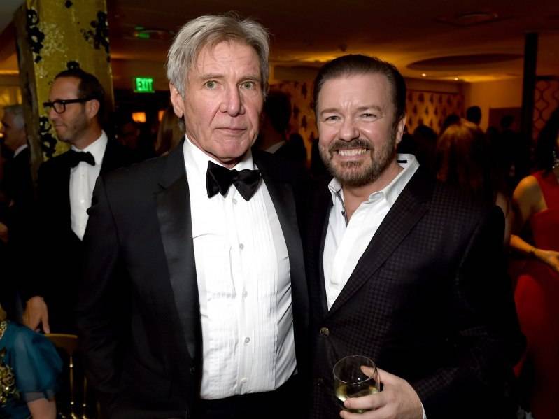Harrison Ford (L) and Ricky Gervais attend HBO’s Official Golden Globe Awards After Party