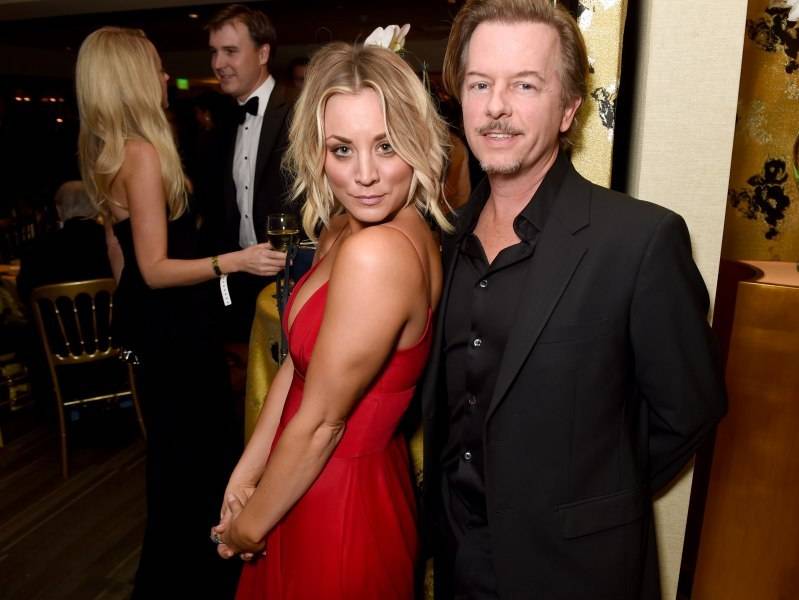 Kaley Cuoco (L) and David Spade attend HBO’s Official Golden Globe Awards After Party