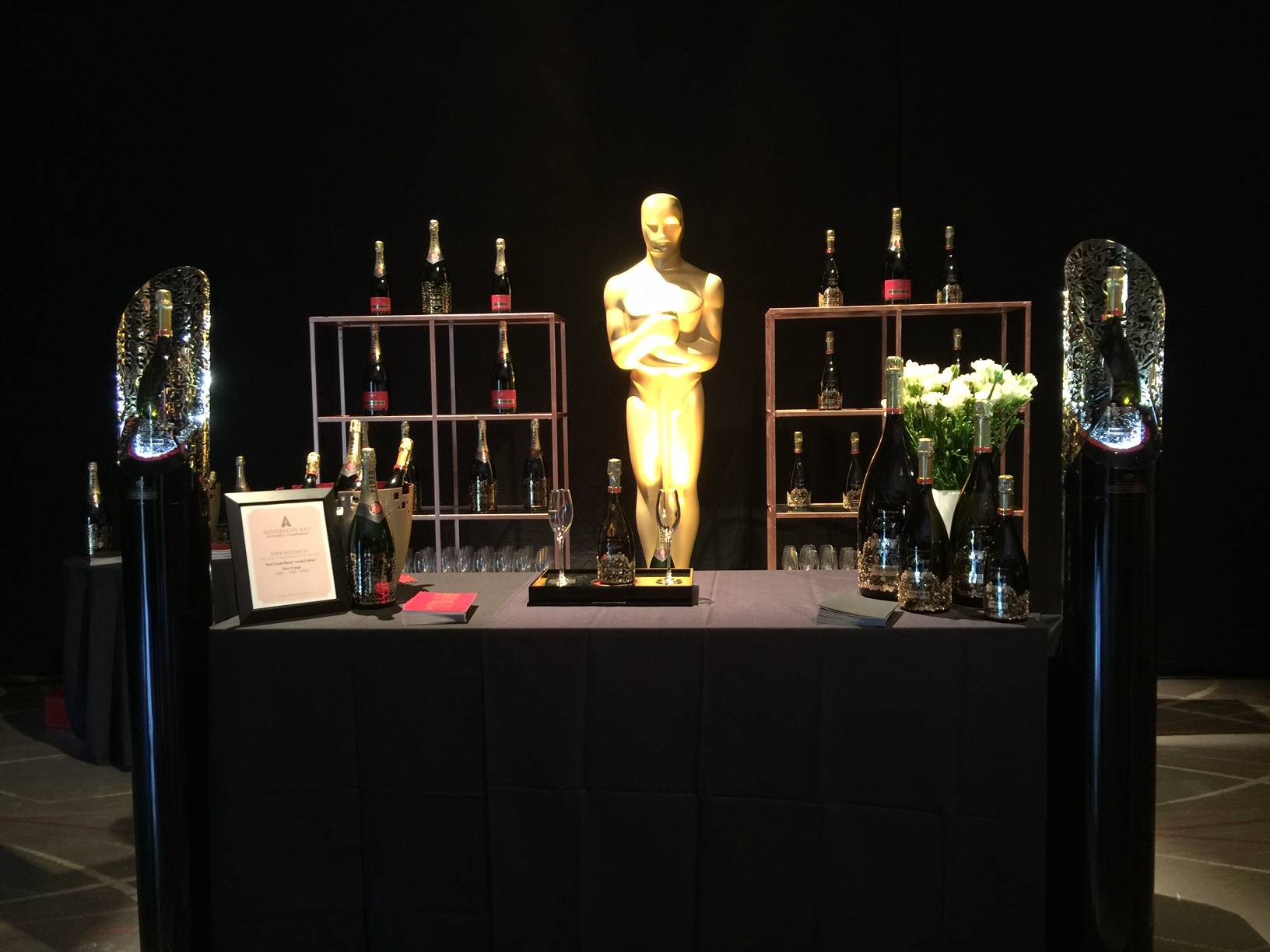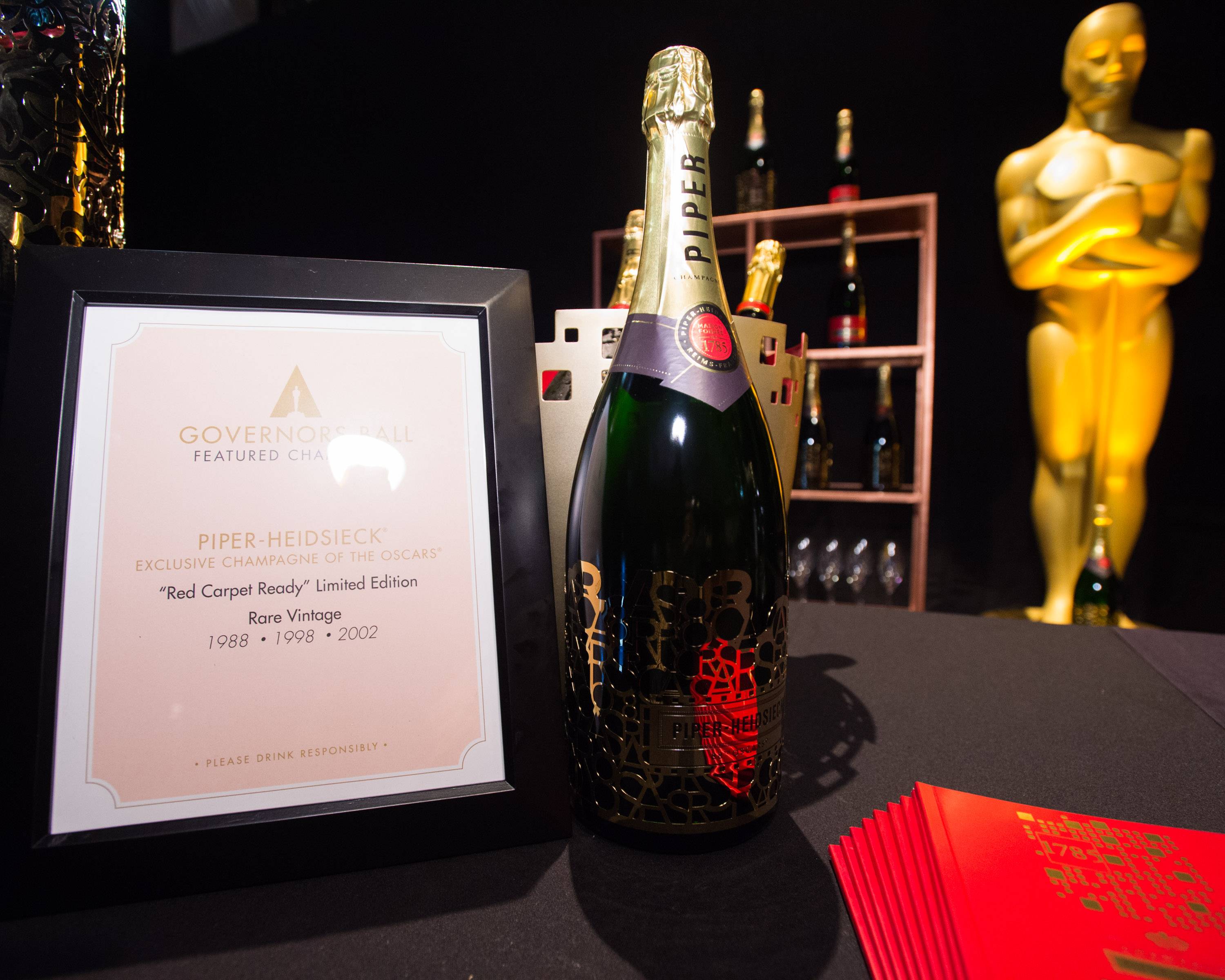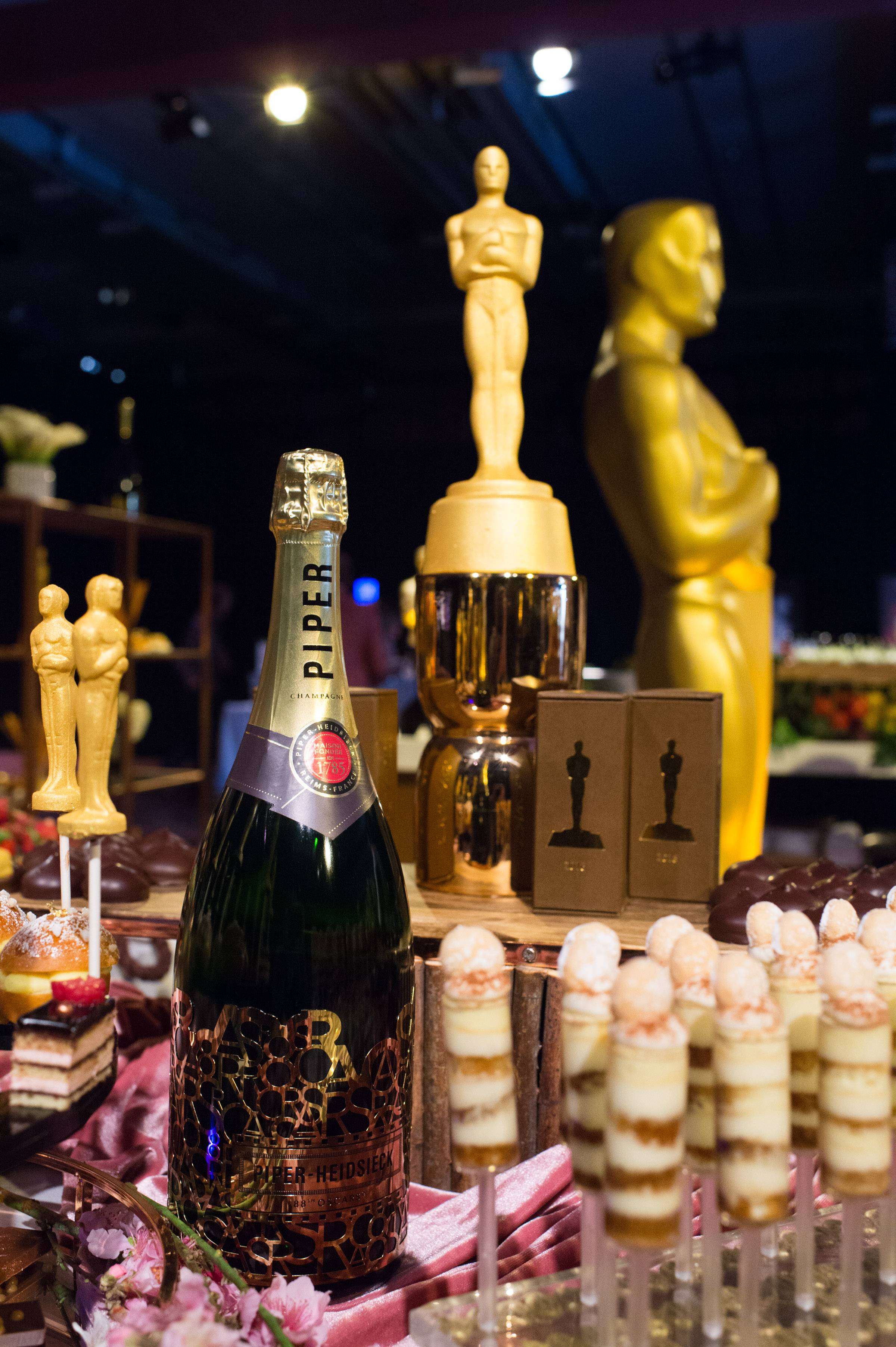 230-year-old French champagne house Piper-Heidsieck is the official bubbly of the Oscars. The brand unveiled at the preview the “Red Carpet Ready” limited edition magnum bottle with the word “Oscars” and the number “88” forming a golden tiara (you can actually take it off and it wear it) wrapped by hand around each bottle. The champagne will be poured alongside wines from Sterling Vineyards.