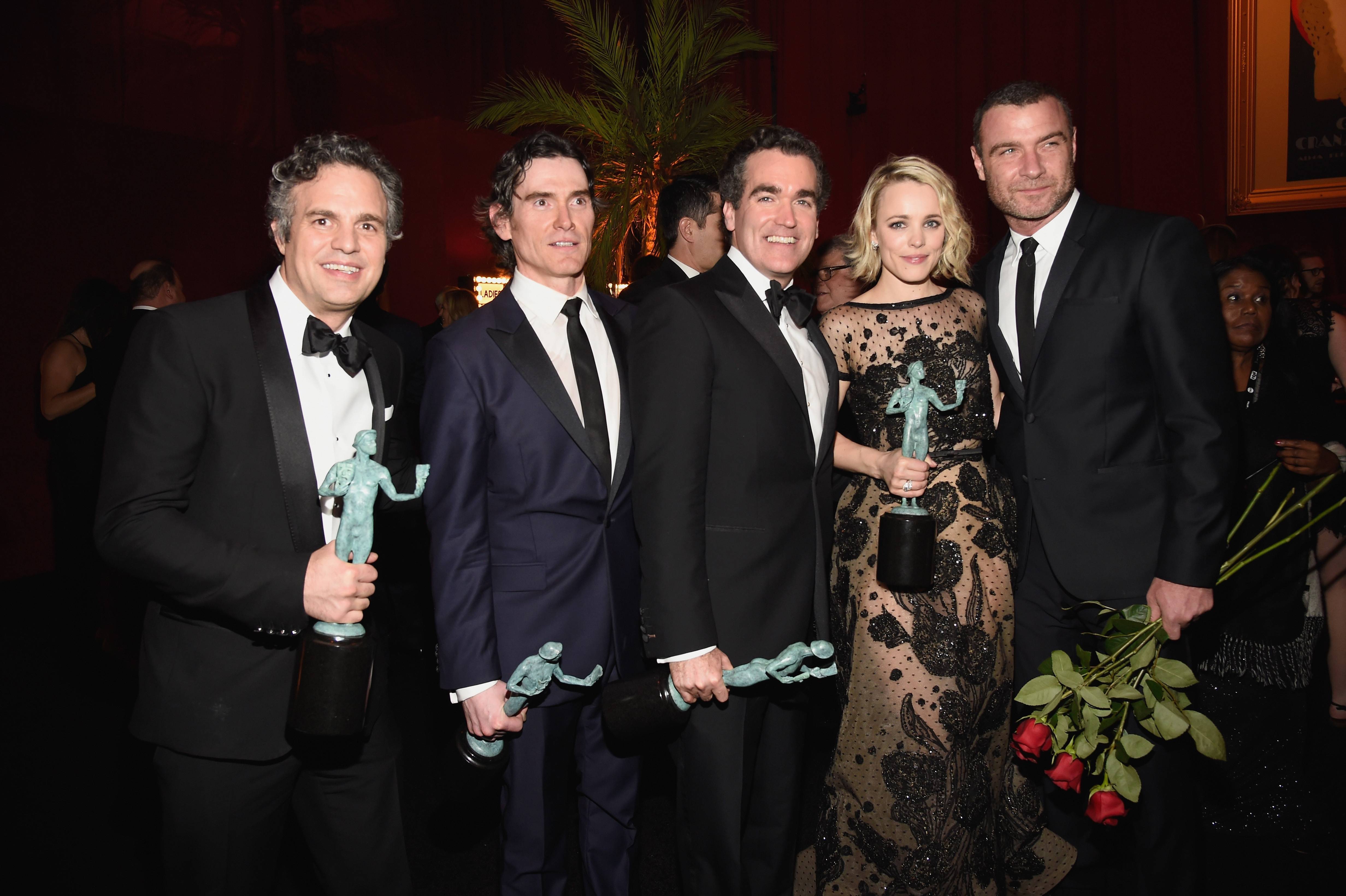 Immediately following the ceremony, A-list guests like Alejandro González Iñárritu, Amanda Peet, Billy Crudup, Brian d’Arcy James, Carol Burnett, Christina Hendricks, Demi Moore, Diane Guerrero, Eddie Redmayne & Hannah Bagshawe, Idris Elba, January Jones, Jesse Tyler Ferguson, Jessica Pare, John Slattery, Johnny Galecki, Julia Louis-Dreyfus, Kaley Cuoco, Katie Couric, Kevin Spacey, Kiernan Shipka, Laura Prepon, Laverne Cox, Leonardo DiCaprio, Liev Schreiber, Marisa Tomei, Mark Ruffalo, Michael Keaton, Michael Sheen, O’Shea Jackson Jr., Queen Latifah, Rachel McAdams, Sarah Paulson, Sarah Silverman, Tina Fey, Tony Hale, Uzo Aduba and Viola Davis headed to the Entertainment Industry Foundation (EIF) and People Magazine gala at the Shrine Exposition Center.