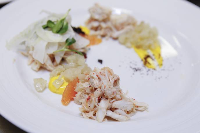 To that end of marrying Nathanson’s music and the evening’s dinner, Sharp created a menu of Lake Pontchartrain blue crab with saffron aioli as the appetizer, a loin and shoulder emigh farms lamb entrée with medjool dates, pistachio and chermoula, and a decadent deconstructed sugar pie pumpkin cheesecake for dessert, with bourbon apples.