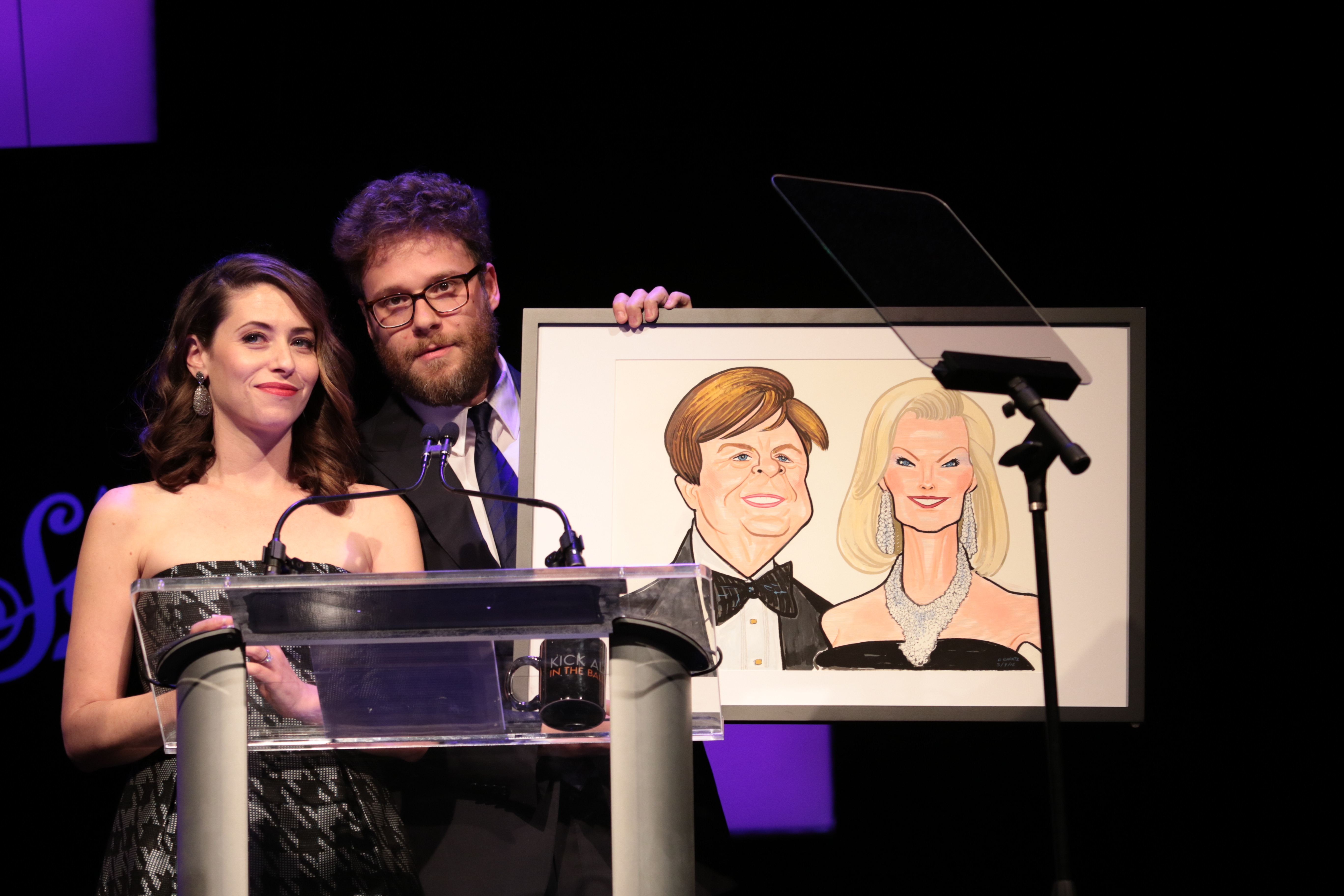 Laurie Burrows Grad, who co-founded “A Night at Sardi’s” with her late husband, Peter Grad, 23 years ago in honor of her father, Pulitzer-winning playwright Abe Burrows, effectively passed the torch to the Rogens, the co-founders of another, rapidly growing non-profit that also benefits the Alzheimer’s Association, Hilarity for Charity.