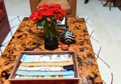 The store’s design was devised by architects Emiliano Vitolo and Giulio Baiocco, and features luxurious materials such as walnut, leather, bronze and travertine stone wisely layered by Philip Vergeylen and Evelyn Saenz Guijarro of Paolo Moschino for Nicholas Haslam Ltd. in order to bring Italy and its unique savoir-faire to L.A.