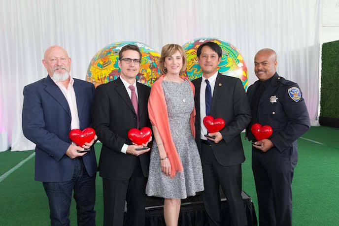 San Francisco General Hospital Foundation recently celebrated the 11th annual Heroes & Hearts luncheon on the field at AT&T Park. James Larson, Officer Raphael Rockwell, Terry Saltz and Dr. Clement Yeh were awarded the “Heroes & Hearts Award” for their “above and beyond” efforts that benefit the community. The Foundation also honored Pam Baer, who was featured in our Nov/Dec 2015 philanthropy issue, with “The 2016 Spirit Award,” celebrating her 14 years of service on the Foundation Board. Proceeds from the event, combined with Hearts After Dark and the Hearts in San Francisco project, have raised more than $14.6 million for life-changing and life-saving programs and initiatives at Priscilla Chan and Mark Zuckerberg San Francisco General Hospital and Trauma Center. Later that evening at AT&T Park, San Francisco General Hospital Foundation hosted more than 1,000 BIG-hearted Bay Area young professionals on the field. Sugar Ray front man Mark McGrath took the stage with ultimate cover band Pop Rocks for an unforgettable performance as guests danced the night away on center-field.