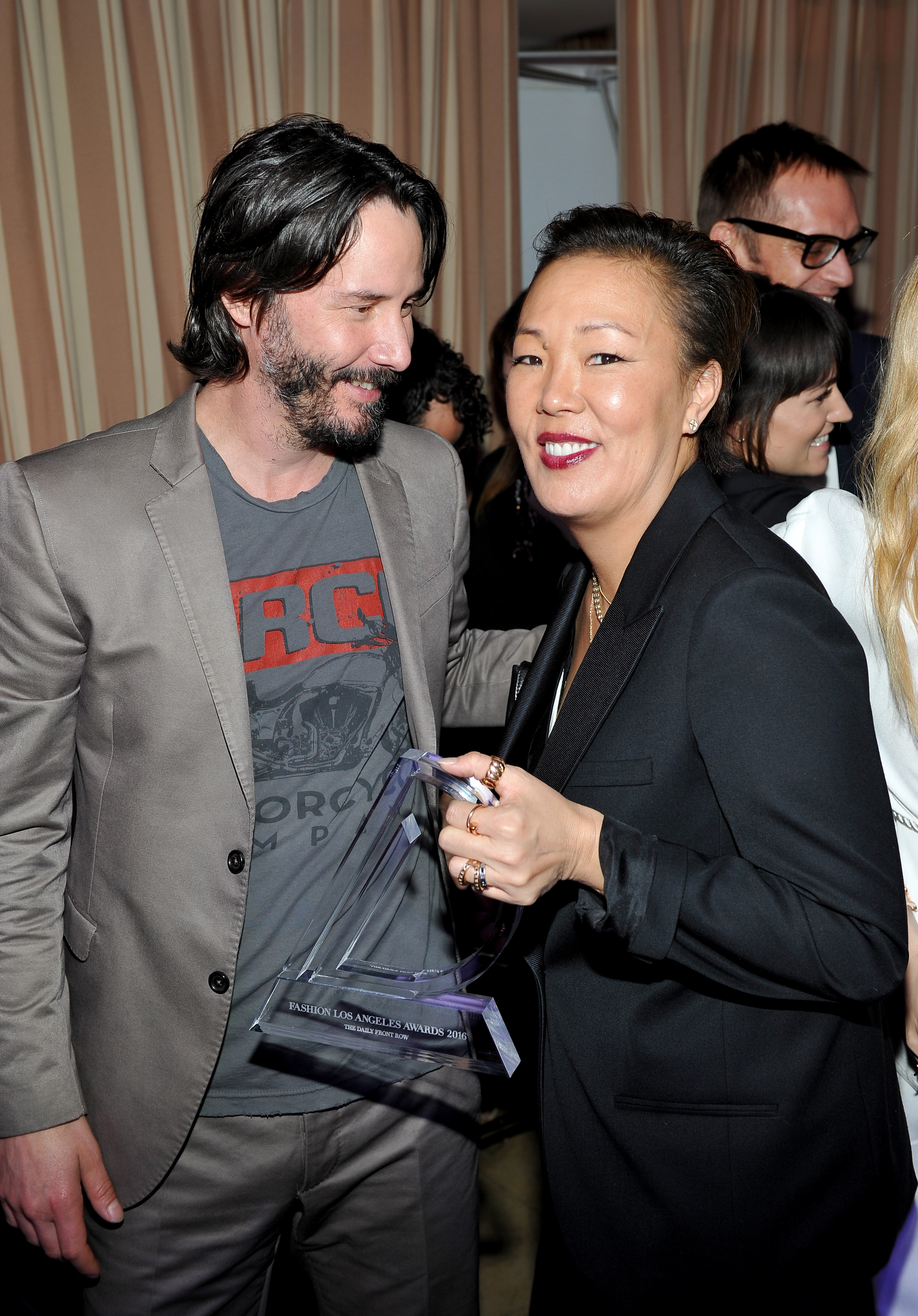 Additional attendees and presenters included Alber Elbaz, Gigi Hadid, Kate Hudson, Jennifer Lopez, Keanu Reeves, Jeremy Scott, Alessanda Ambrosio, Rosie Huntington-Whiteley, Kris Jenner, Kenya Kinski-Jones, Ashley Madekwe, Tobey Maguire, Nicola Peltz, Will Peltz, Lucky Blue Smith, Abel “The Weeknd” Tesfaye, Nico Tortorella and Rachel Zoe, among others.