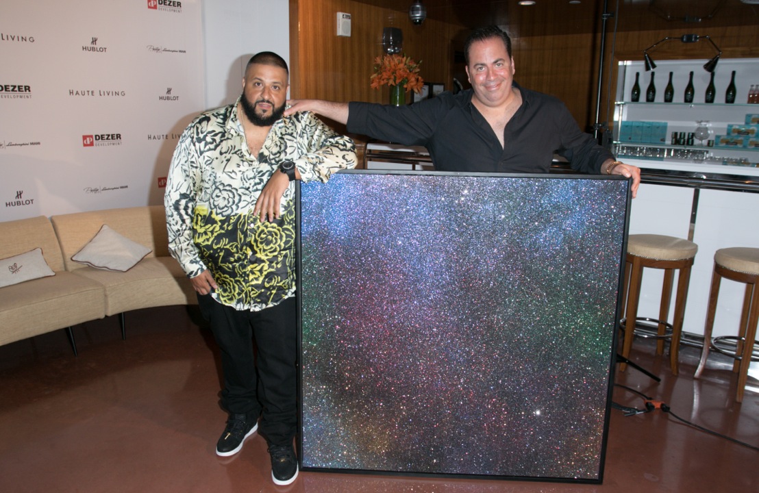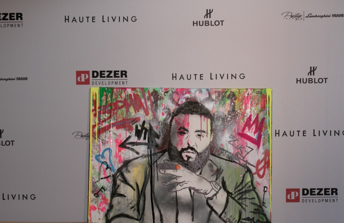 The music icon showed some “fan luv” by taking pictures and videos with guests at the party throughout the night. Later, he was joined by Hublot’s Rick de la Croix, Prestige Imports CEO Brett David and Dezer Development CEO Gil Dezer for a conversation on social media. Haute Living CEO Kamal Hotchandani moderated the discussion, asking each expert on his view of social media and how it has affected their businesses. Rick de la Croix discussed the virality of social media and how it has become a crucial tool in delivering 24/7 news to the public. While Gil Dezer himself likes to remain under the radar on social media, he understands the importance of the tool for his business and looked forward to hearing tips from DJ Khaled. At the end of the discussion, Joey Goldman of Goldman Properties presented DJ Khaled with a custom painting.