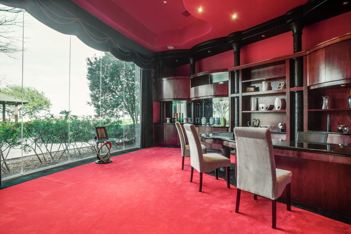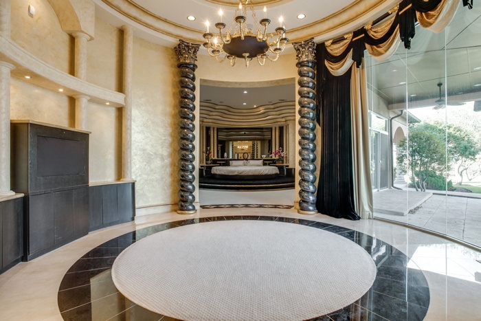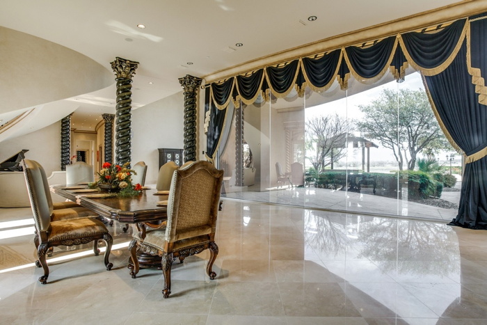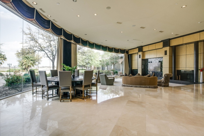 Outside of the enormous estate, you will find an eight-acre fully stocked lake, private dock, resort-style backyard gardens, outdoor kitchen and a 14 bay garage with two extra bays to fit a yacht or RV. With more than enough room and architecture reminiscent of the Taj Mahal, this Lone star property proves, “Everything is Bigger and Better In Texas.”