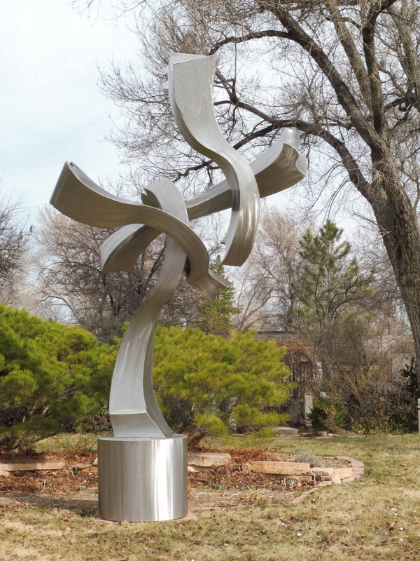 Over the past three decades, renowned Colorado metal sculptor Kevin Robb has made his mark on the national and international art scene. With a unique style and consummate welding quality that have defined and differentiated his work, Kevin’s sculptures are not created according to a set plan. The placement of each element is an answer to a question of relationships, which he discovers as the work is in progress. He becomes one with the metal and intuitively knows the precise twists and turns that will be required to achieve the desired result. This was the process in the creation of “Serenading the Clouds”