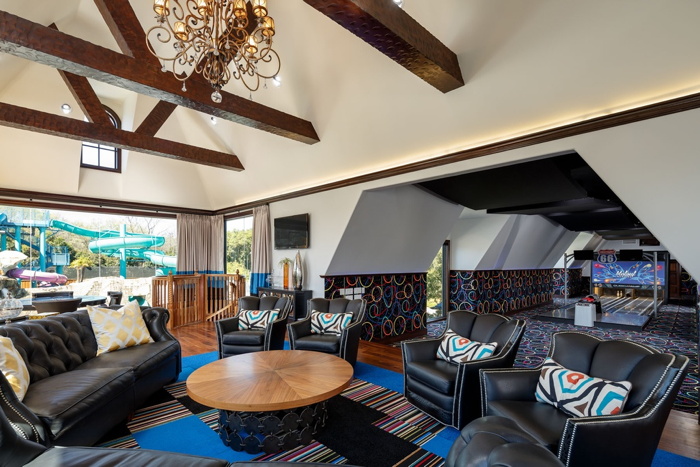 The magnificent detail displayed throughout the home was designed by Robbie Fusch of Fusch, Serold and Partners. With a dramatic entry, glamorous formals and multiple living spaces the estate makes you feel like royalty. The master suite is its very own sanctuary and includes, his and her bathrooms and closets. All 8 bedrooms are en suite and there are multiple game rooms and living areas, indoor basketball, bowling alley, padded gymnastic room, DJ area, 10 car garage.
