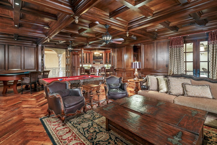 The estate is complete with its own tropical oasis that could rival any top resort in the world and includes a one-of-a-kind water park, tennis court, sport court, two cabanas and wonderful spaces for outdoor entertaining. With all these amazing amenities a “staycation” never sounded so good.