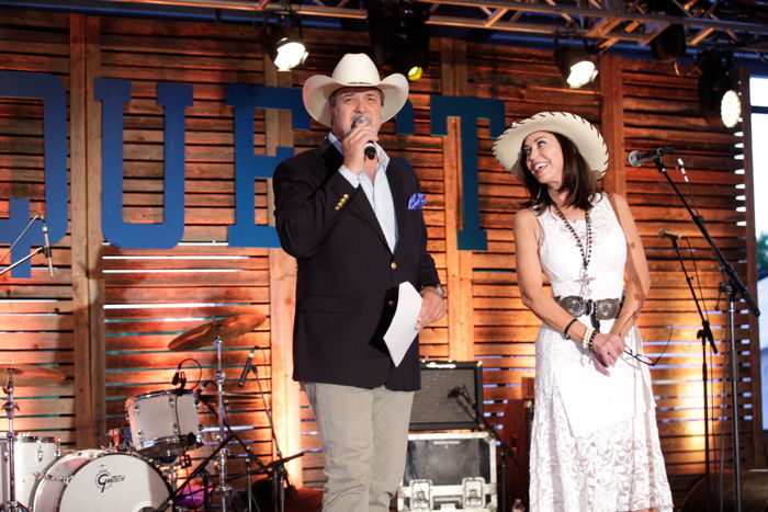 Once the sun set, guests sat down to indulge in a delicious southern, home-style dinner from Farm to Table Catering. Emcees of the evening, Jocelyn White of Designing DFW and Jody Dean of KLUV 98.7 FM took the stage to present a heart-warming anniversary video and to introduce a few of the key people who have helped lead and shape Equest throughout its 35-year history. Among the names mentioned were Susan Schwartz, who received a standing ovation for her continuous passion, faith, and dedication in creating the very first equine-assisted therapy program in Texas.