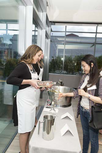 Over 75 tech and wine luminaries attended the tasting which raised $25,000 for the North Beach Citizens. Guests included Ryan and Molly Graves, Medium founder Evan Williams and his wife, Sara, Mason and Anna Morfit, Nat Simons, SF Wine School founder David Glancy, and George and Pam Hamel of Hamel Family Winery. Robert Kamen, a vintner and screenwriter who is coming out with a film about the Paris Tasting next year, raffled off four non-speaking roles in his upcoming film. The party took place in the gorgeous penthouse at the Battery with 16 different wines stationed around the room. The Battery’s wine director, Christophe Tassan, selected the wines and the passed appetizers—scrumptious croque monsieur with gruyere and black forest ham, steamed chickpea cakes with turmeric and pineapple chutney, and shaved beef tenderloin with horseradish cream on black sesame rice crackers—that guests nibbled on during the tasting.