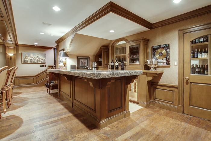 Each room of the home is richly appointed with all the elements of a luxury estate. Amenities of the home include guest wing, mud room, four-floor elevator, media room with bar, mini kitchen in master and multi-level slate patio with water features.