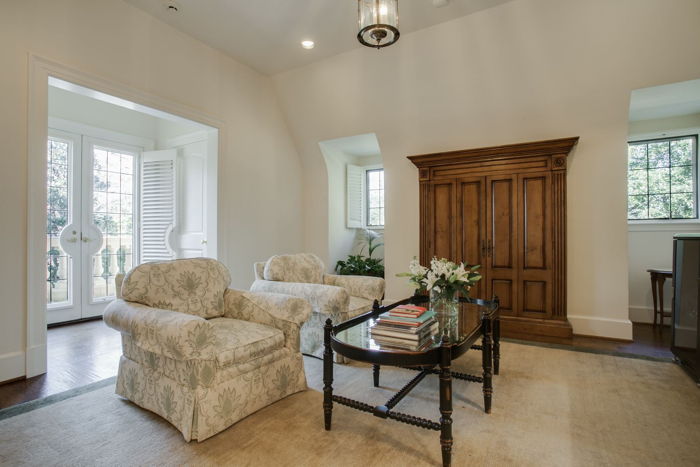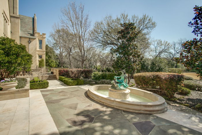 Driving up to this breathtaking estate you may feel like you’ve ventured off into the English countryside but this home is located only minutes away from the hustle and bustle of Dallas’ busy epicenter. The gated English Tudor home sits on 1.7 acres of unobstructed views of Goar Park, backs up to an idyllic babbling brook and is surrounded by mature trees. Characterized by its distinctive architectural elements, the home’s facade sets the tone for making anyone’s storybook wishes come true. If this already sounds like a dream, once you walk through the doors of the home, you are transported to the old world charm of a traditional home with rich wood and marble floors.