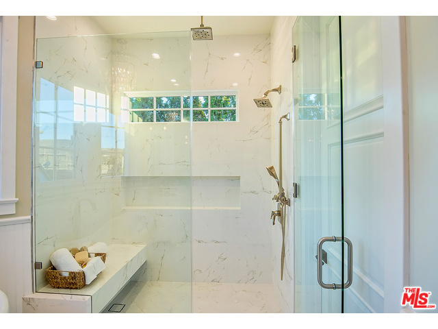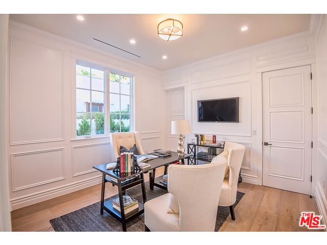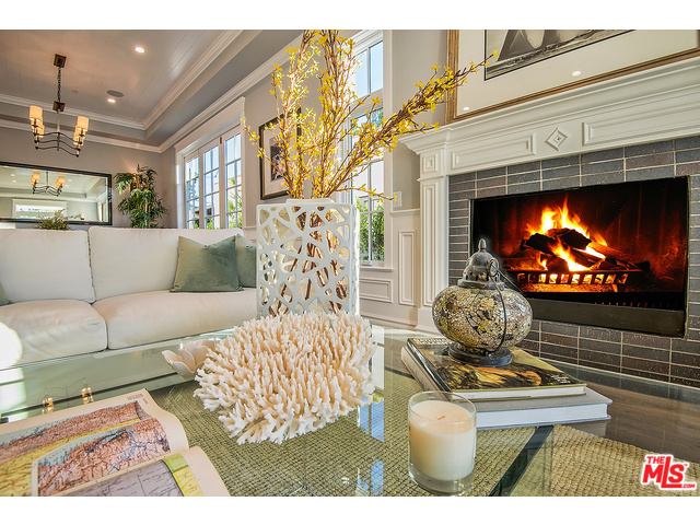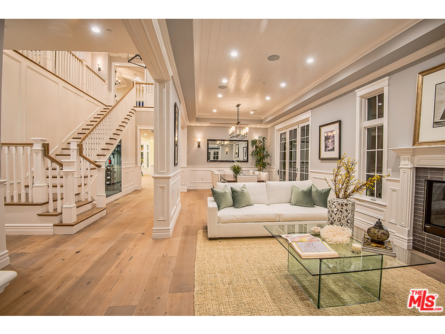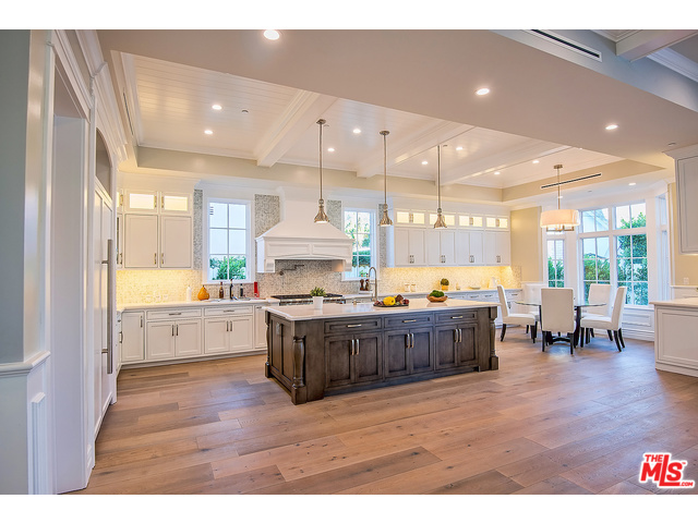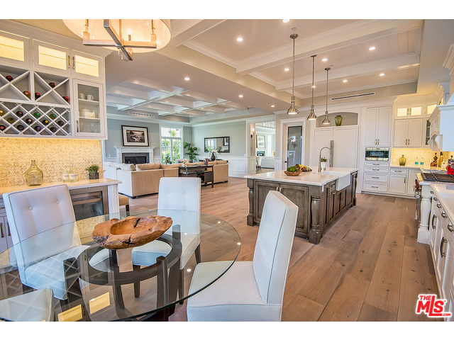 A large Caesarstone island, appliances by Sub-Zero and Wolf, and a walk-in pantry can be found in the gourmet kitchen. The master bedroom is equipped with multiple walk-in closets, his-and-her vanities, and even a refreshment bar. The two-story West Hollywood mansion also boasts a wine room with glass doors, a saltwater pool, and a spa.