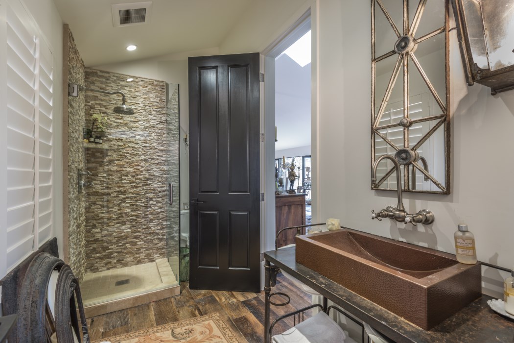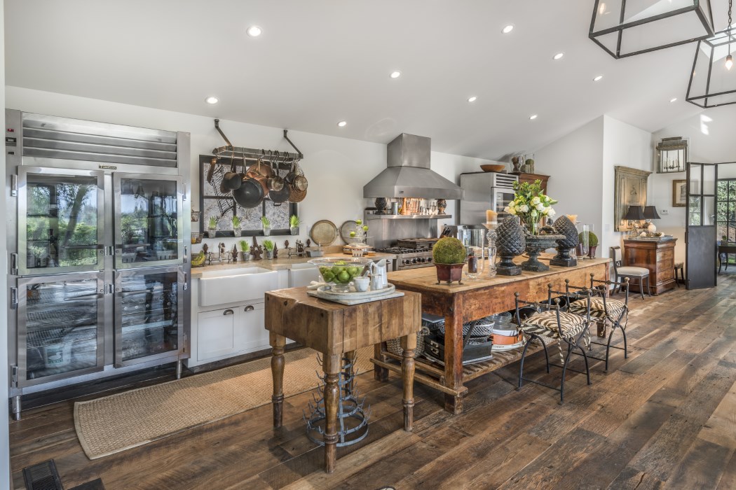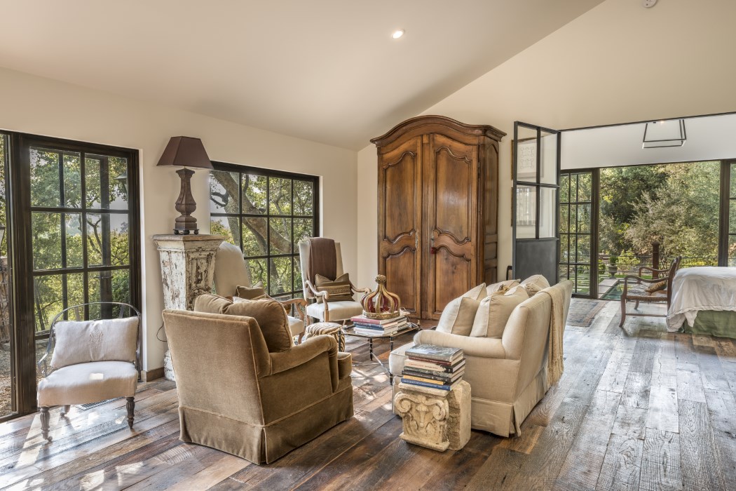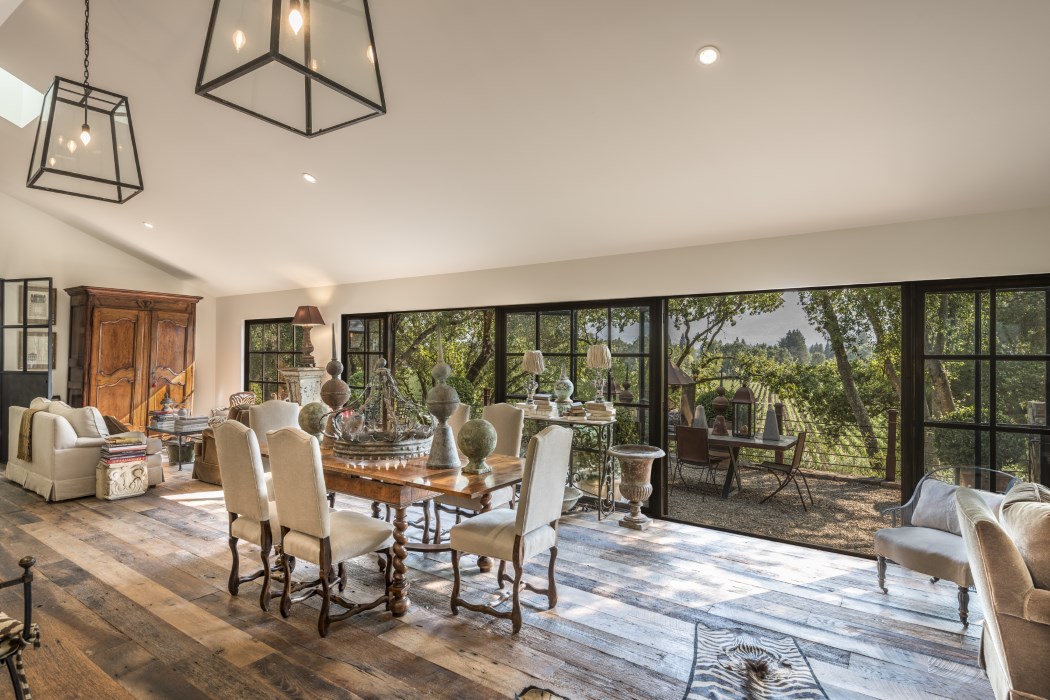 The architectural materials blend the old world style-new world style with contemporary, clean lines that enhance the luxurious setting. Renovated in 2015, this impeccable property is move in ready. Commercial Stainless steel 60 “Viking stove, Viking DW, Viking 24” Tall wine cabinets, and a 48” Traulsen refrigerator. French limestone counter-tops, 11’ 200 year old French Oak Pastry table used for the island, 2 Farmhouse Waterworks’ sinks, and Waterworks fixtures complete this chef’s kitchen. One of a kind Italian iron wash basin, copper sink, and rough hewn marble adorn one bath and Limestone, zinc counter on one of a kind zinc industrial base, copper sink adorn the other. 100-year-old reclaimed wood- rustic Hemlock wide plank floors from an antique barn siding are featured throughout the interior and exterior siding with custom corrugated copper raised seam roof. There is a stone outdoor fireplace area with a fountain. Designed with the intentions of embracing the Napa Valley lifestyle, this home is simplicity luxurious with unique quality of materials that goes above and beyond all expectations.