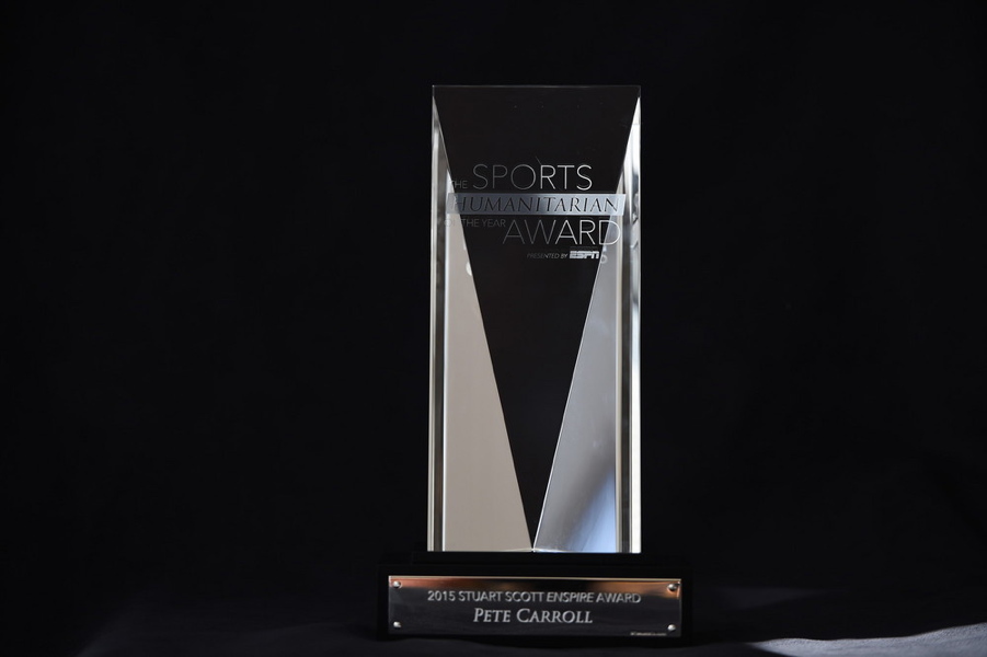The net proceeds from the Sports Humanitarian of the Year Awards benefited the Stuart Scott Memorial Cancer Research Fund at The V Foundation. Additionally, ESPN will grant a collective total of $800,000 to the charities of the nominees and winners, double the amount awarded last year. In total, more than $1.4 million will be distributed to the community as a result of the initiative. In recognition of Muhammed Ali and to make sure his vision for his humanitarian efforts continue, ESPN is proud to make a $100,000 donation to the Muhammad Ali Center.