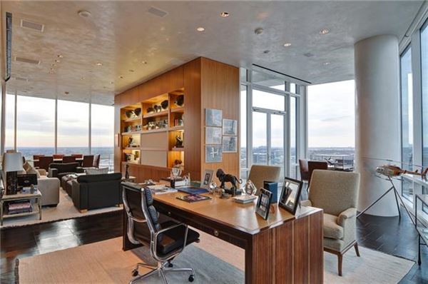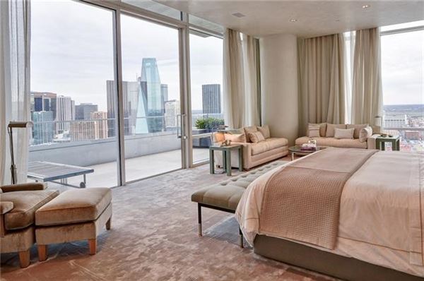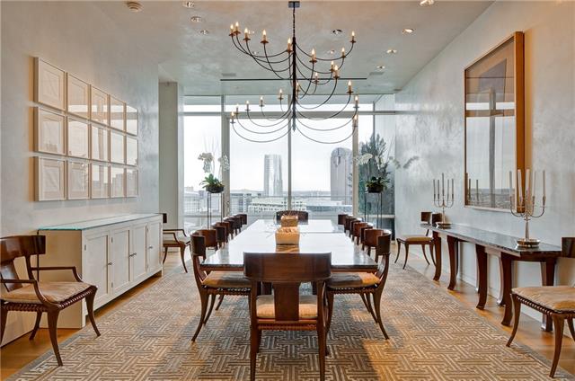 From the moment enter the doors you are greeted with a sublime and staggering views of Dallas. The penthouse’s glass defined space complete with 12 ft ceiling create a striking ambiance and balance between the sky and skyline. It’s five bedrooms, seven full, three half baths, two living, two dining areas, fitness, massage rooms, media room & two studies are all meticulously designed with an acute attention to detail.
