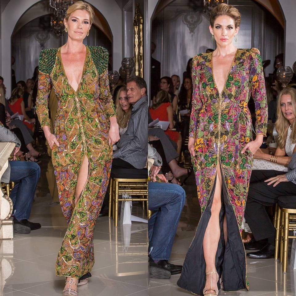You dress celebrities and many of the local socialites in Dallas. Recently, I had the opportunity to wear one of your beautiful gowns for the Emmitt Smith Celebrity Invitational. Could you tell me the inspiration behind the gown and from which collection it was from? You wore our black ‘Melena’ beaded and embroidered dress from our Fall/Winter 2016 Collection. You looked absolutely stunning that evening. That collection is called “Venetian Dream” inspired by a Venetian team. All started when we were renovating our home and I wanted a very detailed crown molding with a venetian vibe and I found a 12” thick crown molding that had the amazing detail and it looked like a serious embroidered pattern. Then my ‘Venetian Dream’ collection was born.
