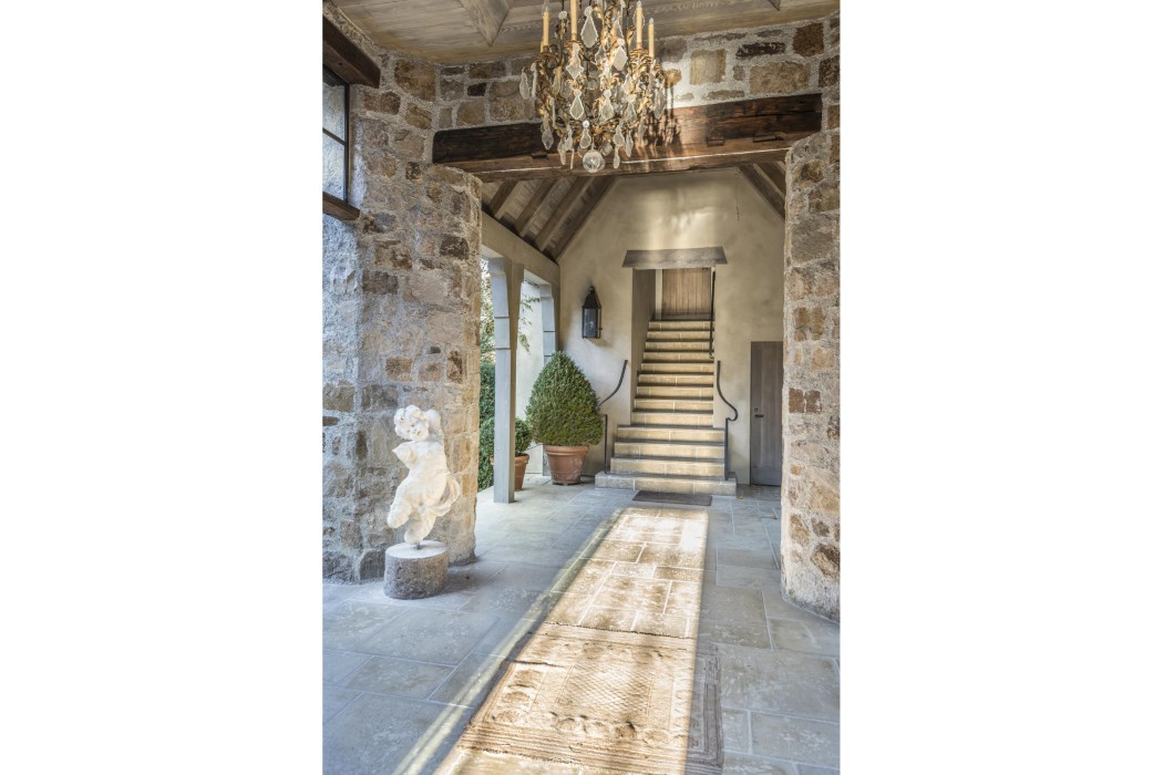 Situated in the heart of Napa Valley, just north of St. Helena, surrounded by thousands of acres of preserved Land Trust, this approximately 40 acre estate compound embodies the essence of Wine Country luxury. A meandering driveway leads through cabernet vineyards and olive groves toward the elegant knoll-top main residence, constructed of weathered cedar, stucco and native stone. There are three interlocking pavilions. The first pavilion main residence boasts a living /dining salon, cook’s kitchen with lounge, library, master and guest suites. Stunning valley views abound from the covered terrace, gardens, and the infinity pool. A second showcases a gym, media room, office/studio and wine cellar. The third includes garages. Two guesthouses, with a secluded pool, complete this compound, designed by Rela Gleason.