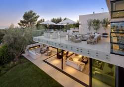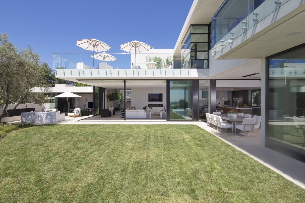This one-of-a kind new construction is bathed in natural light and overlooking captivating city, canyon and partial ocean views. Custom built with no expense spared and only the finest materials and high end finishes, this 5 bedroom, 7 bathroom property offers over 6,200 square feet of luxury living. Walled for privacy, the motor court leads to a waterfall and towering glass entry. Once inside, the open floor plan has floor-to-ceiling pocket doors throughout that disappear and blur the line between indoor and outdoor living. The step down living room features fireplace, wet bar and wood paneled ceilings. The vast great room is designed for large scale entertaining and the formal dining room is accentuated with a two sided fireplace. State of the art kitchen is equipped with built-in banquet, center island, butler’s pantry, sleek Neolith countertops, Bauformat cabinets and Wolf, Miele and SubZero appliances. A floating wood staircase leads to the second level, which includes a family room and extraordinary rooftop deck. Lounge in the master suite with spa bath, surrounded by floor-to-ceiling windows, leading to the wrap around balcony facing endless panoramic views. A separate gym and office lead to the inviting outdoor space with infinity pool and spa, covered living room, sports court, Zen garden, sitting area with fireplace, built-in BBQ area and flat grassy yard. This home is truly a Contemporary masterpiece.