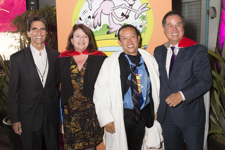 Here’s how the fundraiser works. Local luminaries work with the TNDC’s event team to come up with a fun costume and schtick. This year some of the tossees dressed up as the Blues Brothers, Superman, Alice in Wonderland, a flamenco dancer, and Miss TNDC. Copeland introduces each tossee and asks the crowd to bid on the chance to throw their friend or colleague into the beautiful pool at the hotel. The night’s top tossees were the Nibbi brothers who raised $35,451 to be thrown in the pool. Bob and Mike Nibbi are the president and vice president of Nibbi Brothers General Contractors, a company that focuses on the Bay’s most challenging, logistically difficult and sustainable projects. Other notables who were pushed into the pool included Sally Carlson, a managing partner at Carlson Beck Recruiting, Assembly member David Chiu, John Epstein, the executive vice president of Wells Fargo Bank, and Whitney Hudak, a member of the Symphonic board and Lyft’s corporate counselor.