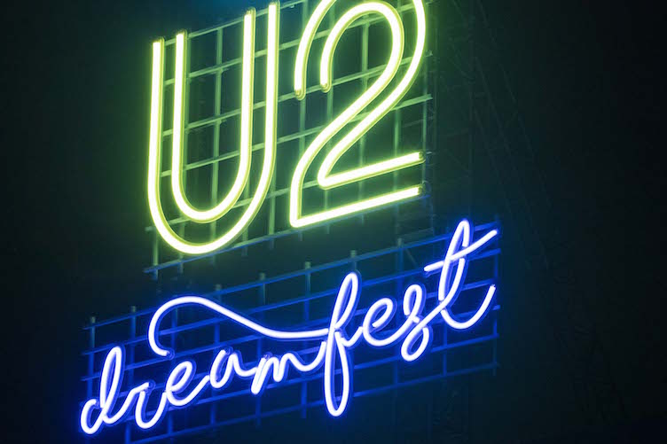 Thought leaders, tech pioneers, and super models were just a few of the people who headed to Daly City on Wednesday night for the 7th Annual Concert for UCSF Benioff Children’s Hospitals. 22-time Grammy Award winners U2 performed at the extravaganza, which was in partnership with Salesforce and their yearly conference, Dreamforce. The event took place outside at the Cow ‘Cloud’ Palace and raised more than $10 million. The festivities began at 7 p.m. with a reception where cocktails flowed freely and a sumptuous buffet satisfied guests. Marc and Lynne Benioff, he in a black baseball cap with rhinestones and she in black pants with lace-up sides, made quite the rocker couple. Party goers like Christy Turlington, Lars Ulrich, and Vanessa Getty dined on a spread of braised chicken with greens, marinated white beans, polenta cakes, and halibut with salsa verde. The bar was wide open and free-flowing. Bono, The Edge, Adam Clayton, and Larry Mullen Jr. took the stage around 8:30 p.m. and kicked off their 16-song set with hit “Vertigo.”